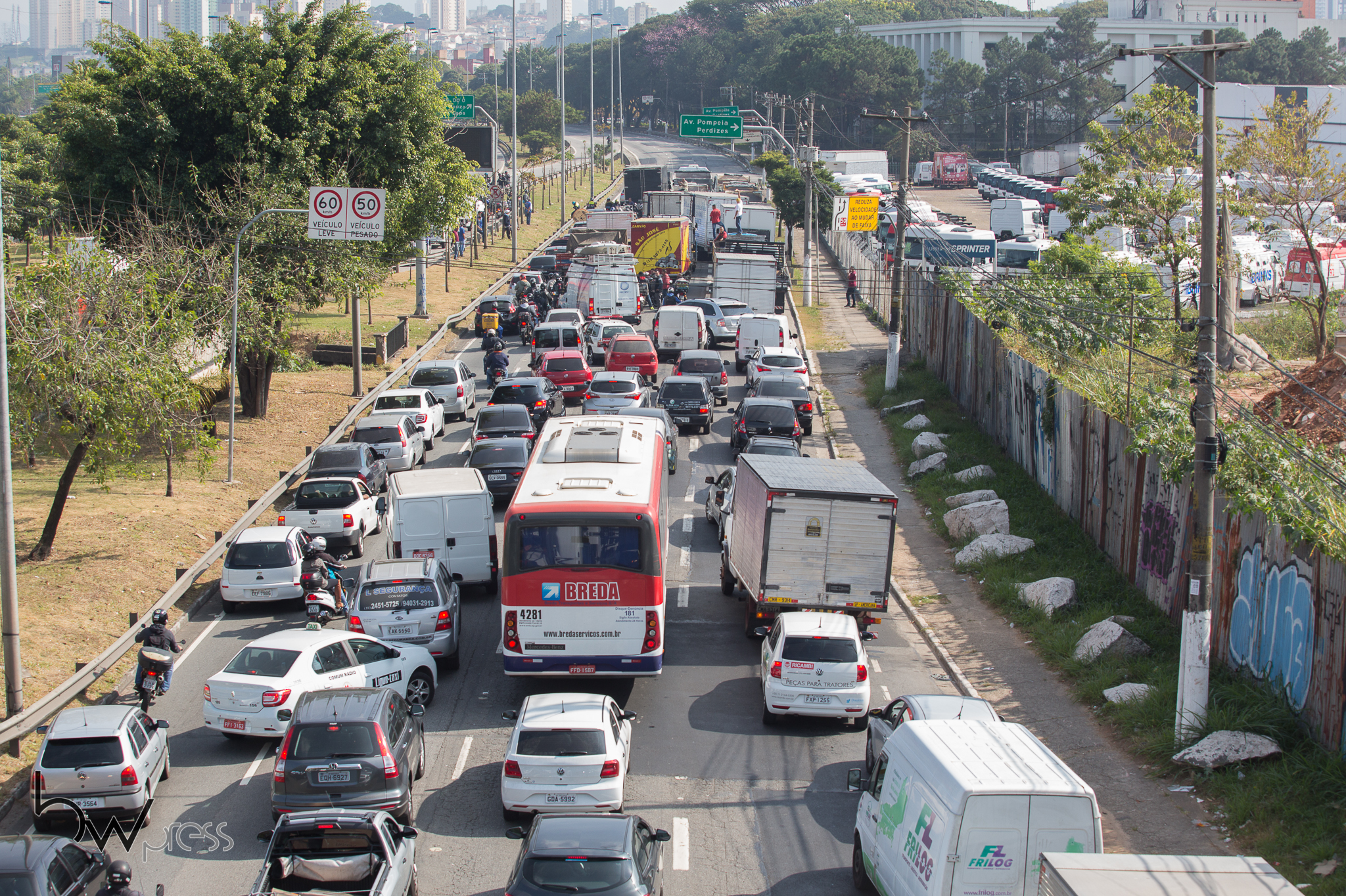 Protesto de caminhoneiros e motociclistas na Marginal Tietê, sentido Rodovia Castelo Branco, na zona norte de São Paulo (SP), nesta quinta feira (24).