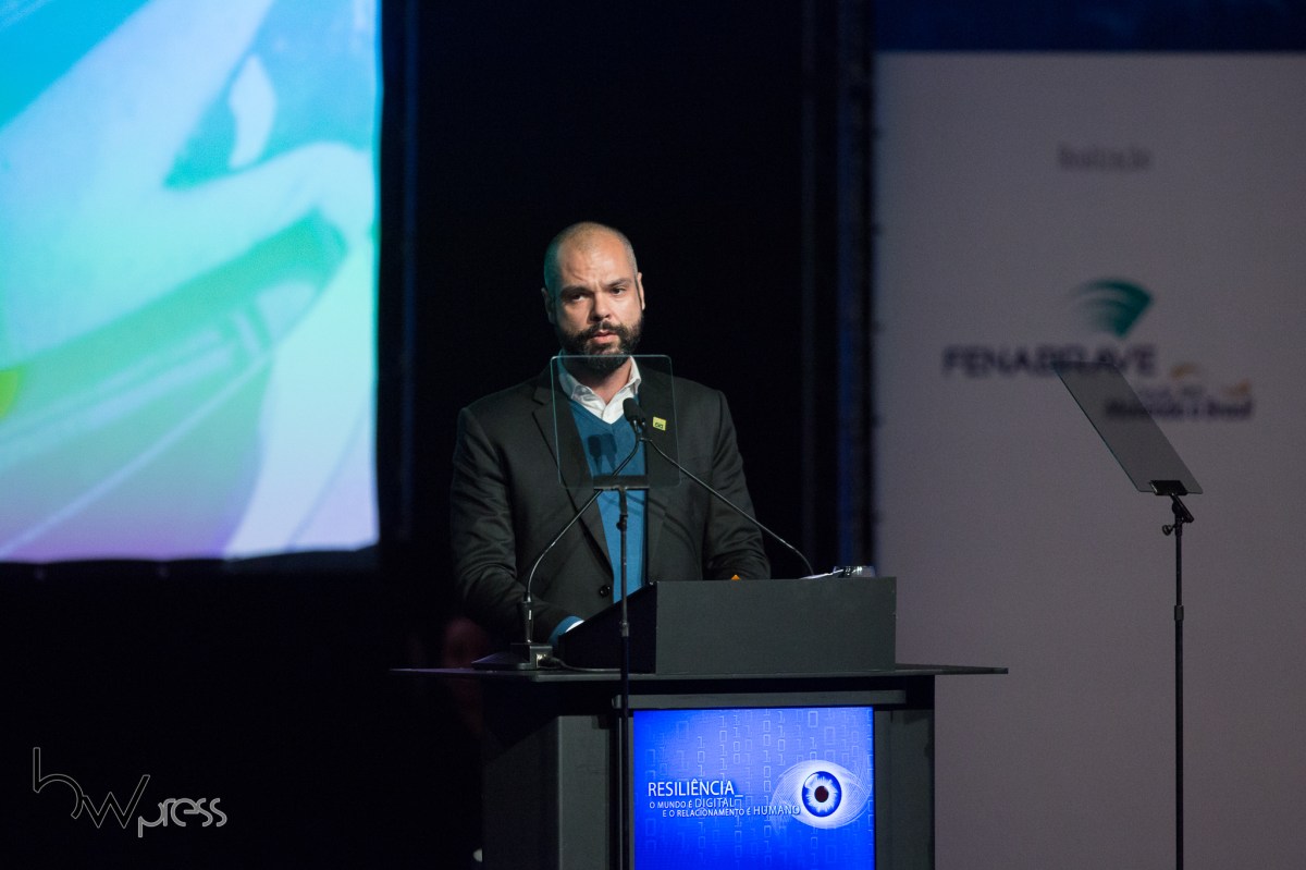 Cerimônia de abertura do 28º Congresso & Expofenabrave, no Transamérica Expo Center, na zona sul de São Paulo (SP) nesta terça feira (07).