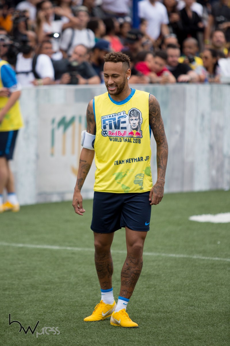 O jogador Neymar Jr durante a final mundial da terceira edição do Neymar Jr’s Five, torneio de futebol do Instituto Projeto Neymar Jr, na Praia Grande, litoral de São Paulo (SP), neste sábado (21). Em dois dias de evento, 59 países disputaram o título do campeonato que nesta edição teve uma categoria exclusiva às mulheres.
