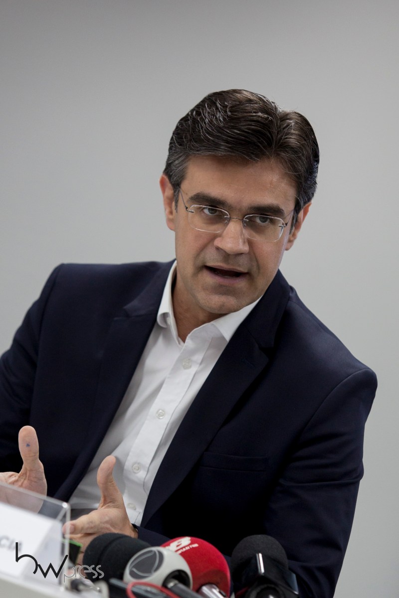 Rodriogo Garcia durante entrevista coletiva dos advogados da coligação Acelera SP, do candidato João Doria, no escritório da campanha, na zona sul de São Paulo (SP), nesta terça feira (21). Durante a entrevista, os advogados apresentaram um email enviado por uma funcionária do Palácio dos Bandeirantes, com informações sobre o programa de governo de Doria, para supostamente ser usado pelo candidato Márcio França, durante o debate na Band entre os candidatos.