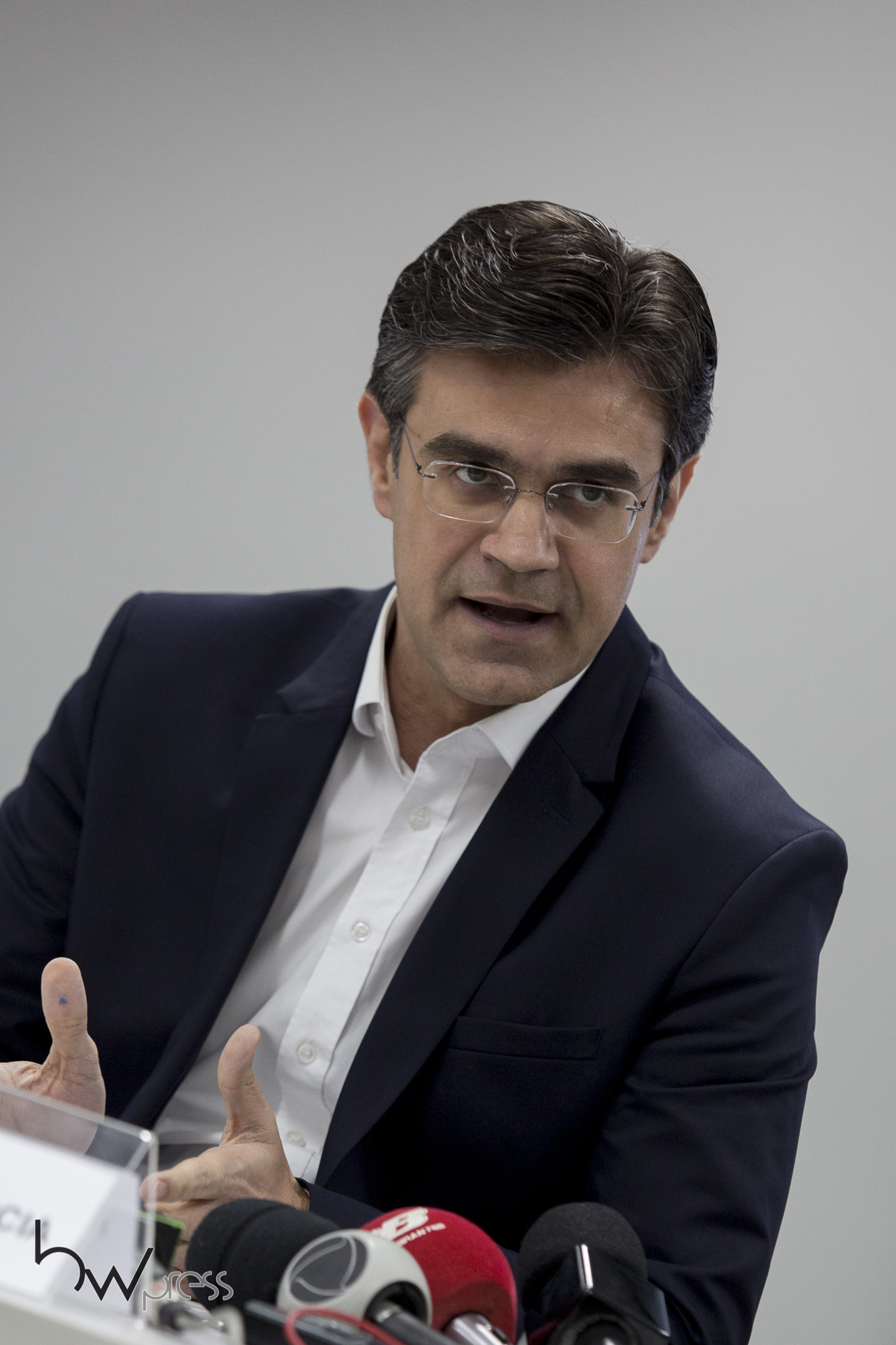 Rodriogo Garcia durante entrevista coletiva dos advogados da coligação Acelera SP, do candidato João Doria, no escritório da campanha, na zona sul de São Paulo (SP), nesta terça feira (21). Durante a entrevista, os advogados apresentaram um email enviado por uma funcionária do Palácio dos Bandeirantes, com informações sobre o programa de governo de Doria, para supostamente ser usado pelo candidato Márcio França, durante o debate na Band entre os candidatos.