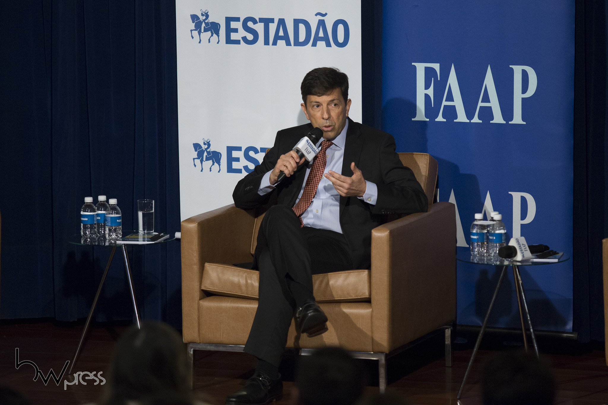 João Amoedo, candidato a Presidente da República pelo NOVO, durante sabatina na FAAP, em São Paulo (SP), nesta terça feira (28).
