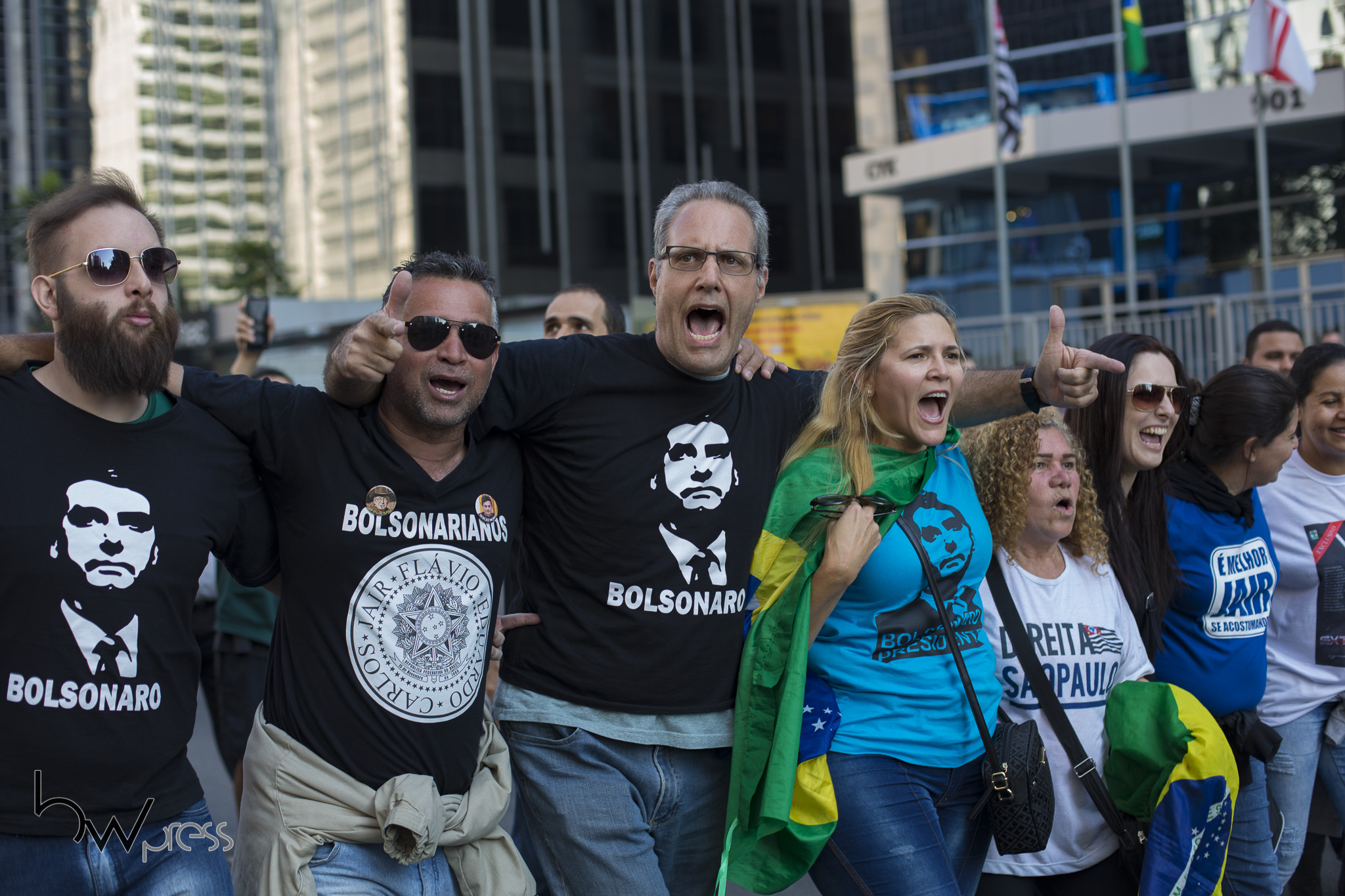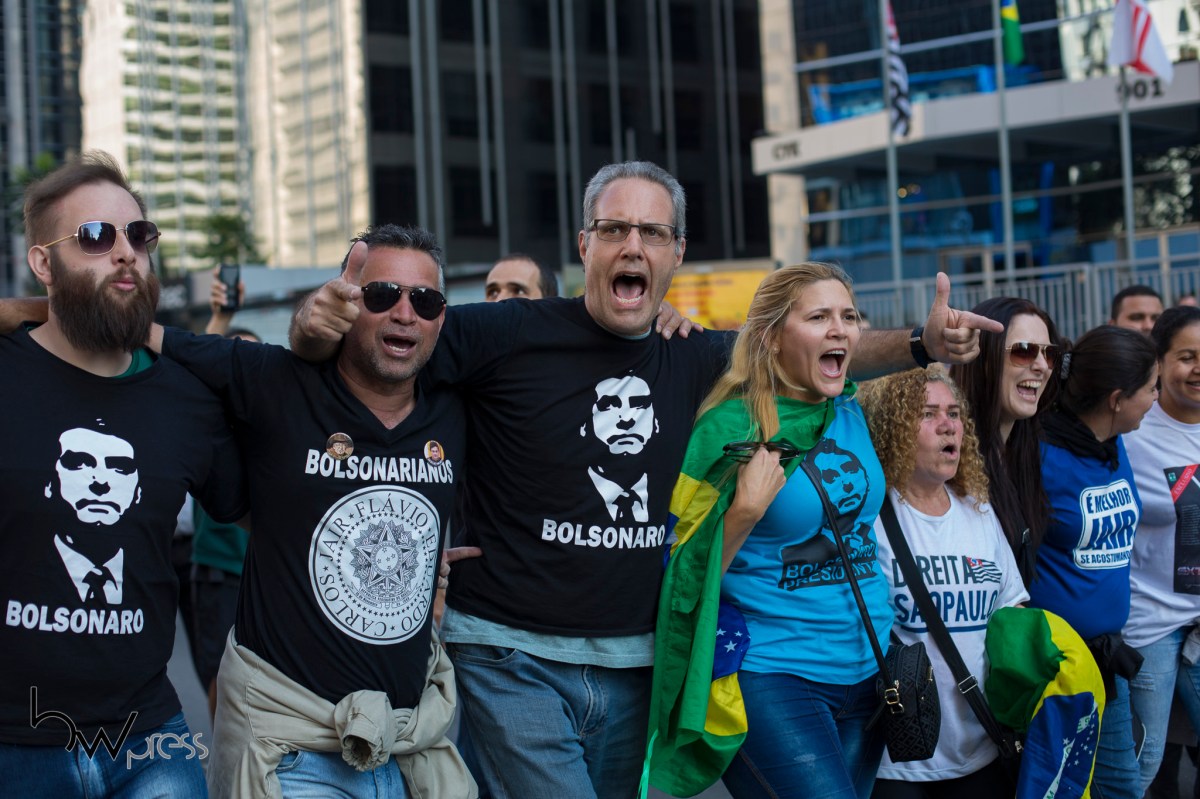 Simpatizantes do candidato a Presidente da República Jair Bolsonaro (PSL) fazem uma manifestação na Avenida Paulista, em São Paulo (SP), neste domingo (09).