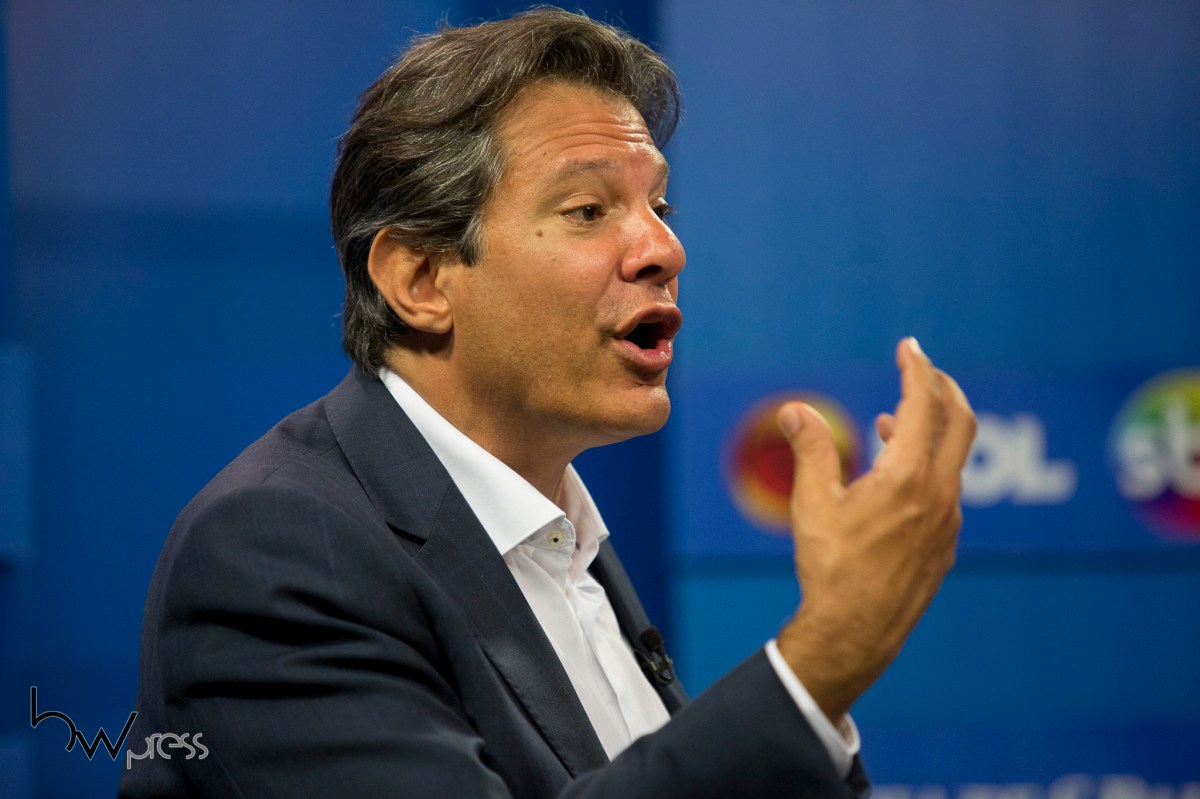 Fernando Haddad, candidato a Presidente da República pelo PT, durante sabatina no UOL, em São Paulo (SP), nesta segunda feira (17).