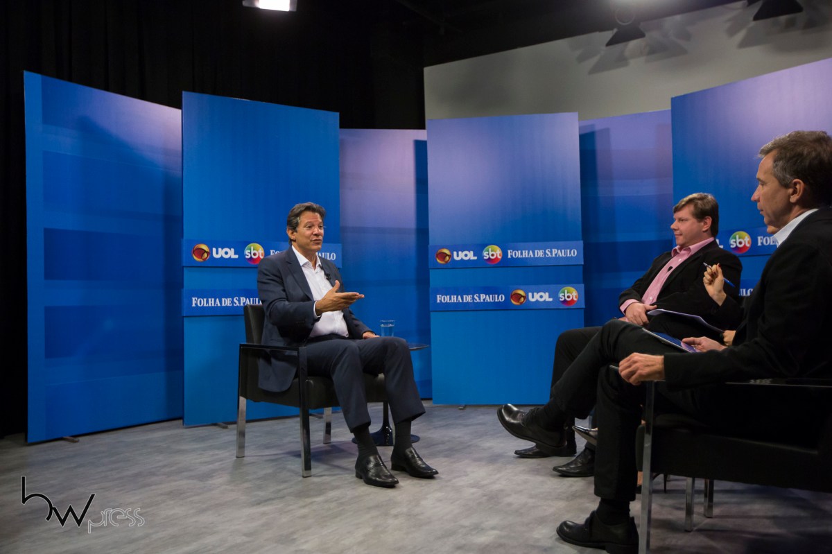 Fernando Haddad, candidato a Presidente da República pelo PT, durante sabatina no UOL, em São Paulo (SP), nesta segunda feira (17).