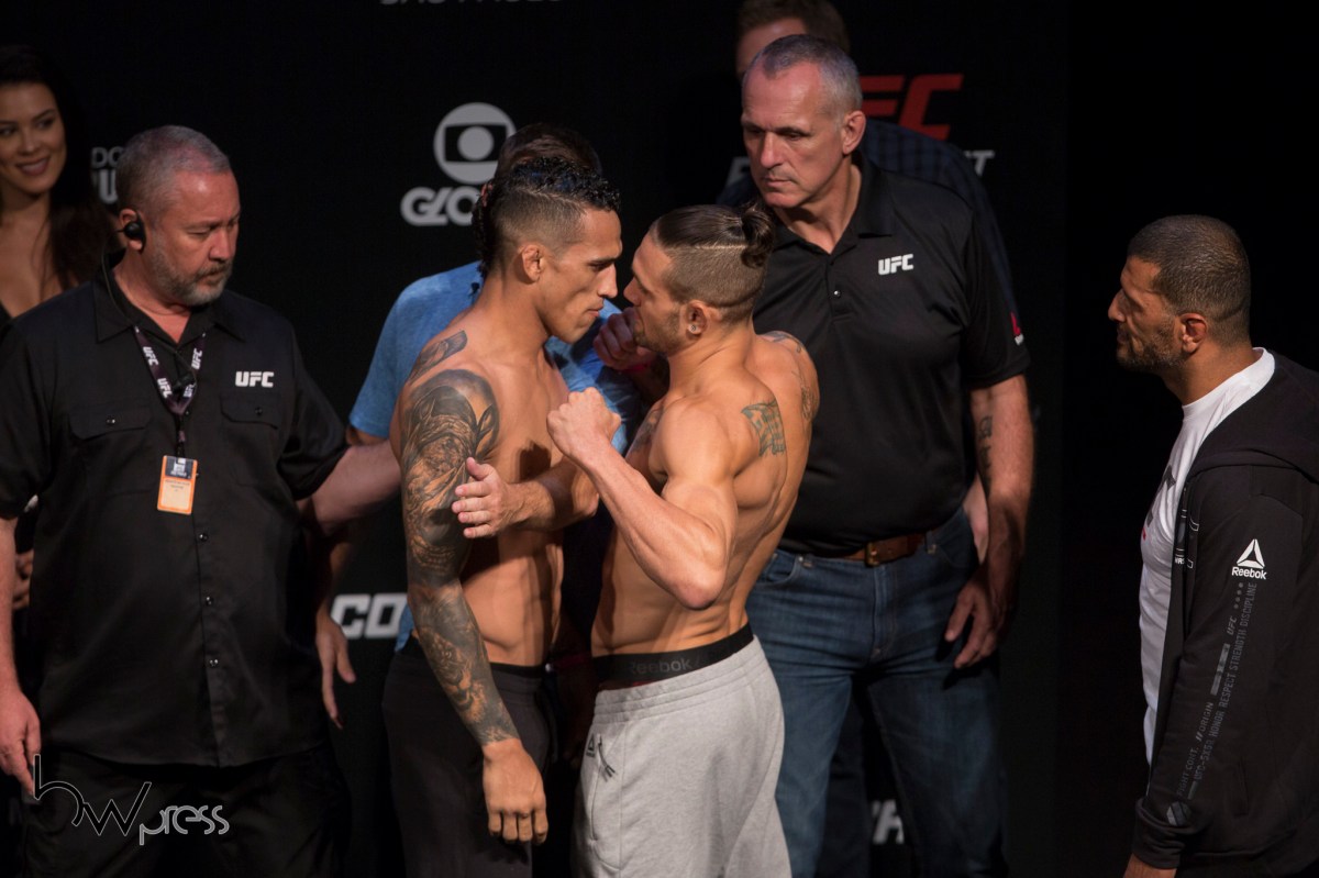 Pesagem cerimonial, no Ginásio do Ibirapuera, zona sul de São Paulo (SP), nesta sexta feira (21). O evento é parte do UFC Fight Night São Paulo, que acontece no próximo sábado (22).