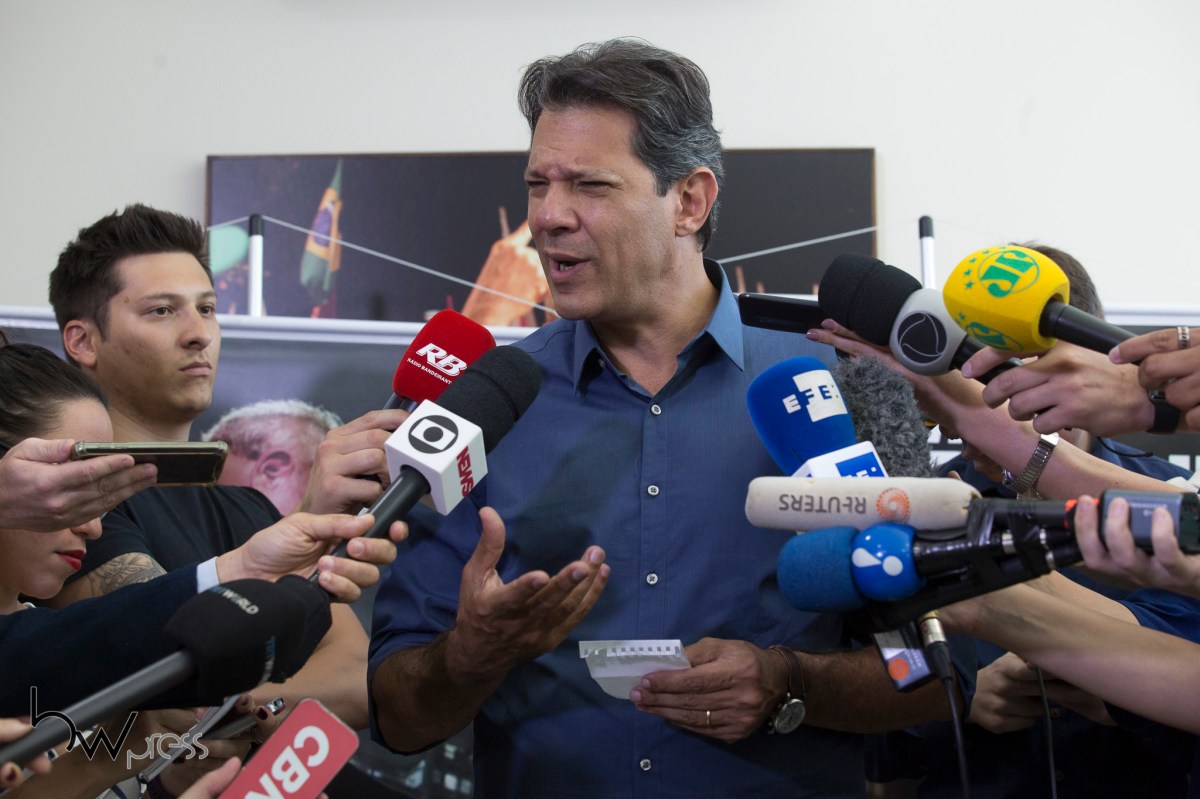 Fernando Haddad, candidato a Presidente da República pelo PT, durante entrevista coletiva no escritório da campanha, em São Paulo (SP), nesta quarta feira (03).