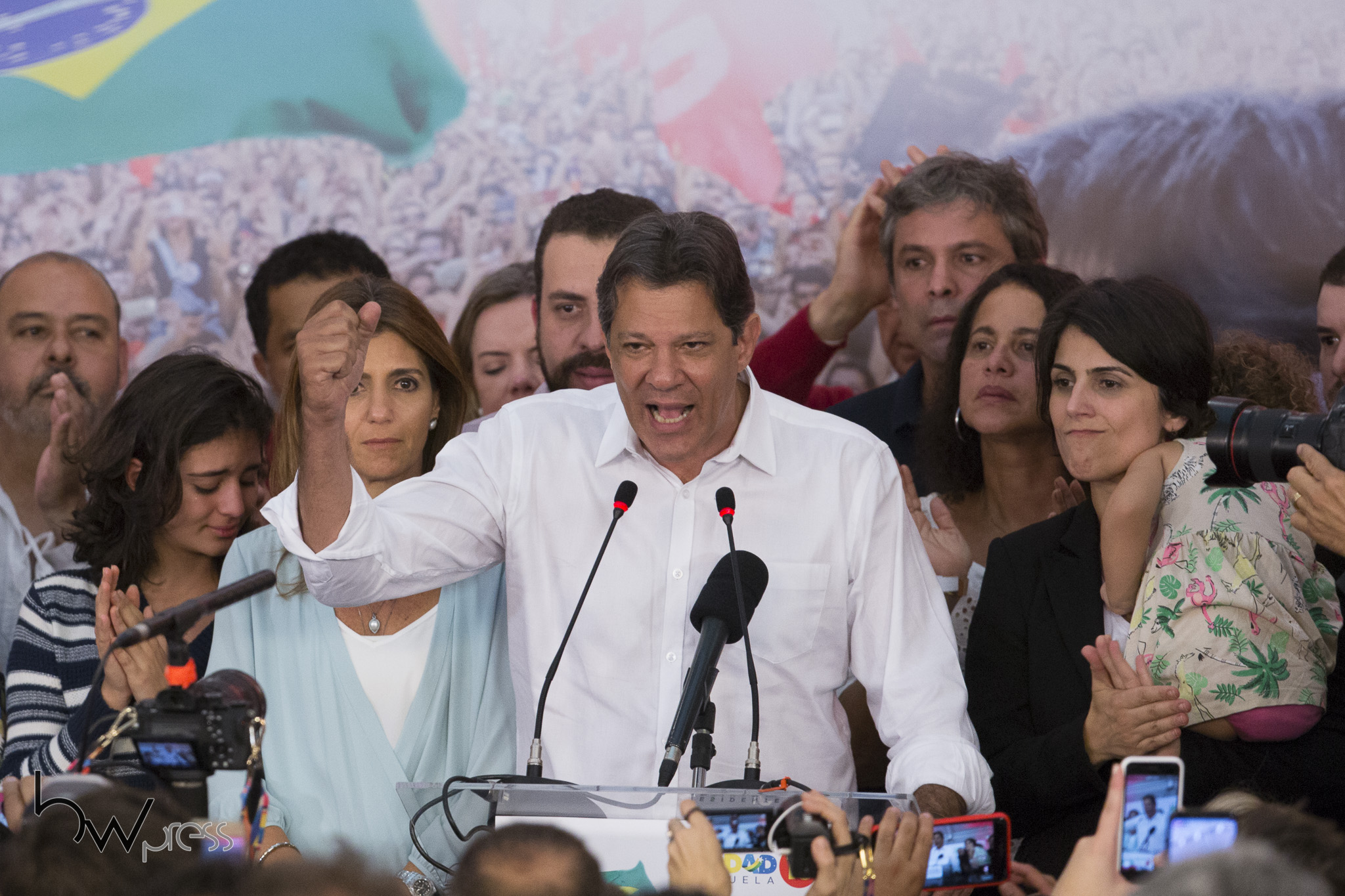 Pronunciamento de Fernando Haddad, candidato a Presidente do Brasil pelo PT, após anúncio de sua derrota, no Hotel Pestana, na zona sul de São Paulo (SP), neste domingo (28).