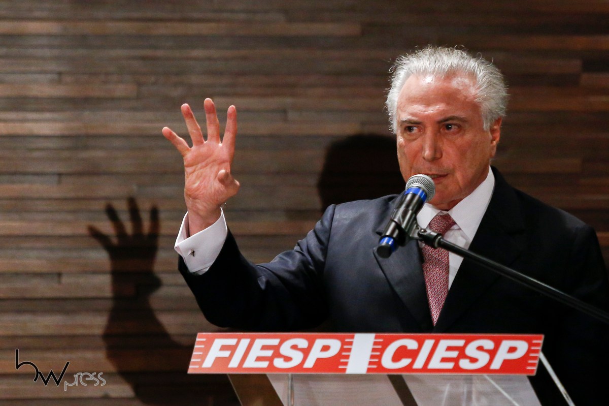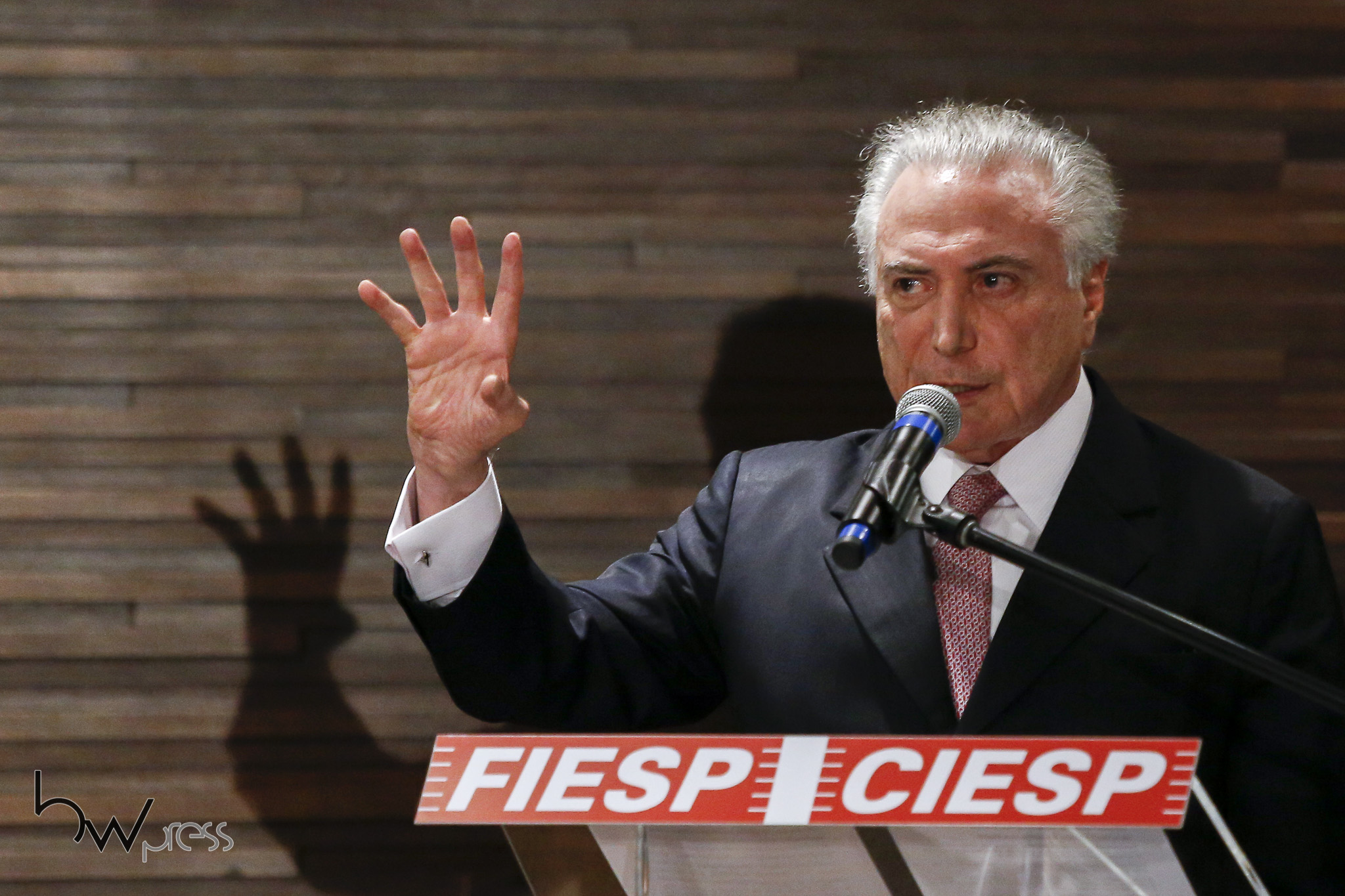 Michel Temer, presidente do Brasil, participa da cerimônia de entrega da Insígnia da Ordem do Mérito Industrial São Paulo na sede da FIESP, na zona sul de São Paulo (SP), nesta quinta feira (06).