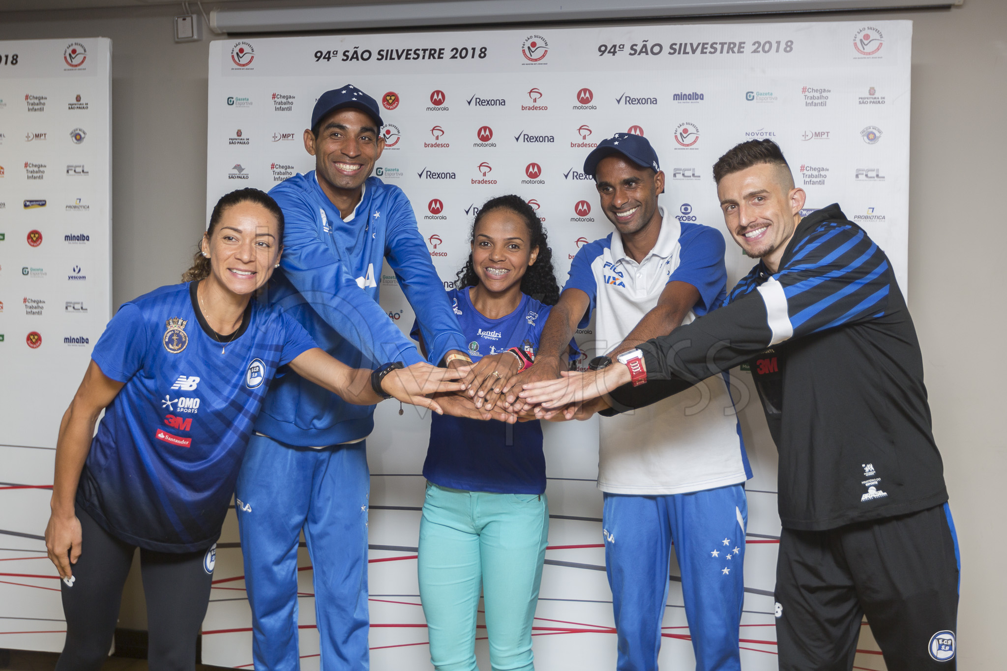 Atletas Brasileiros durante entrevista coletiva antes da 94ª Corrida Internacional de São Silvestre, no Novotel Jaraguá, em São Paulo (SP), neste sábado (29).