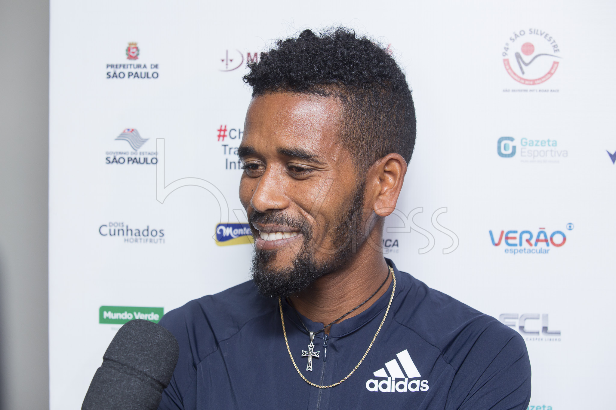 Dawitt Admasu (vencedor de 2017) durante entrevista coletiva antes da 94ª Corrida Internacional de São Silvestre, no Novotel Jaraguá, em São Paulo (SP), neste sábado (29).