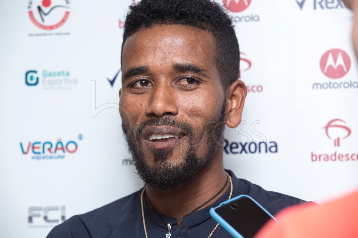 Dawitt Admasu (vencedor de 2017) durante entrevista coletiva antes da 94ª Corrida Internacional de São Silvestre, no Novotel Jaraguá, em São Paulo (SP), neste sábado (29).