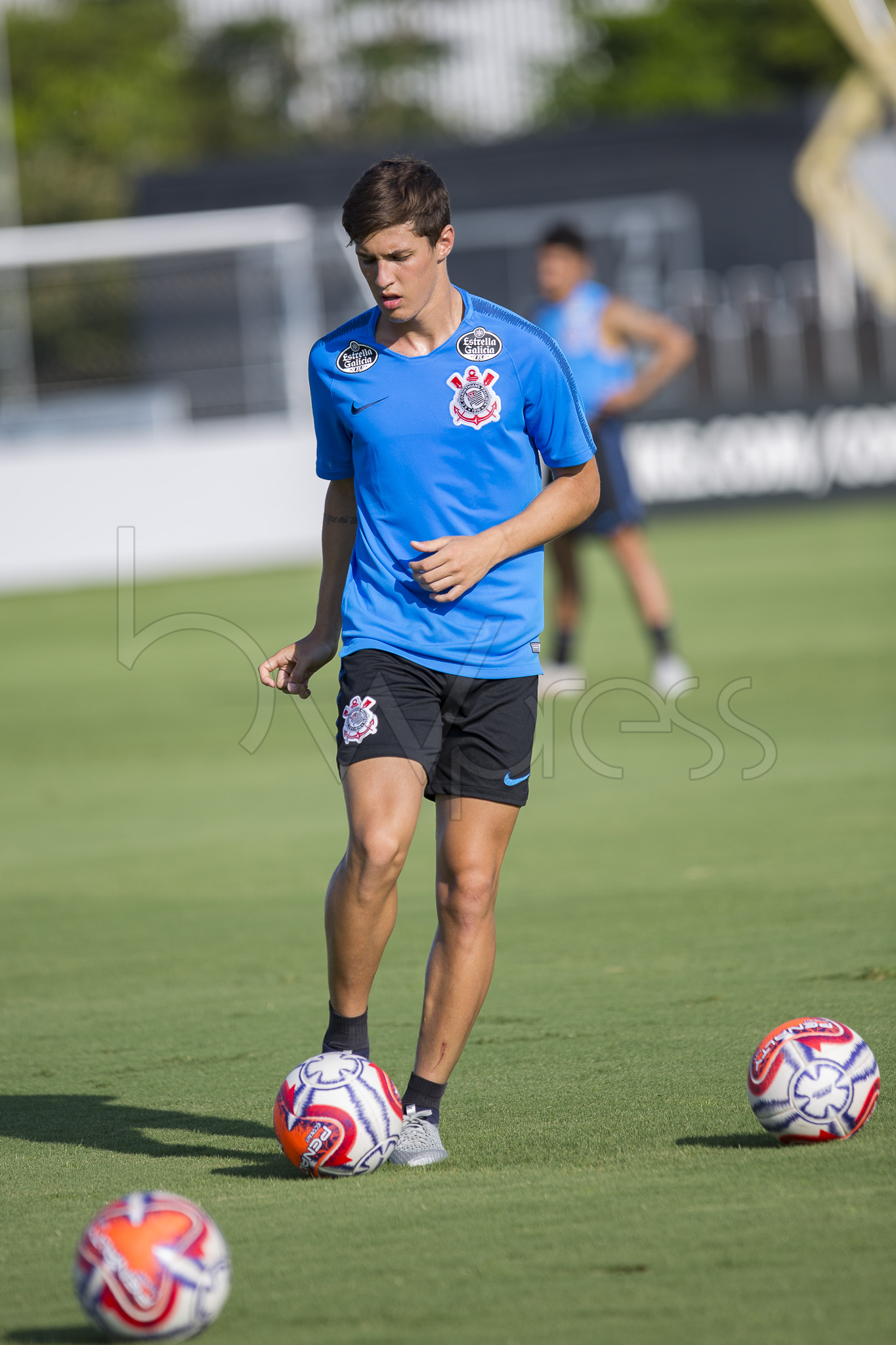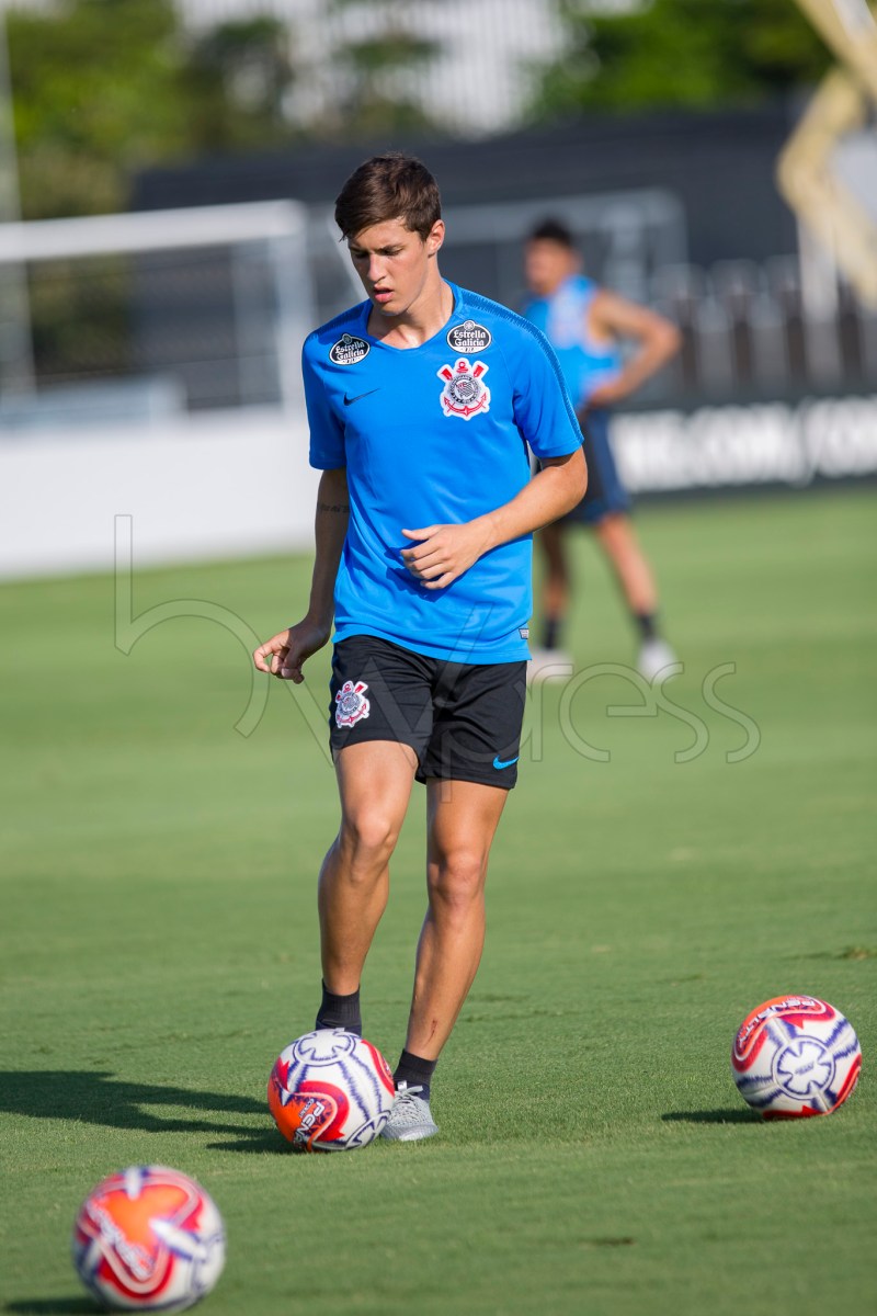 Jogador Mateus Vital durante treino do Corinthians, no CT Doutor Joaquim Grava, na zona leste de São Paulo (SP), nesta quarta feira (09).