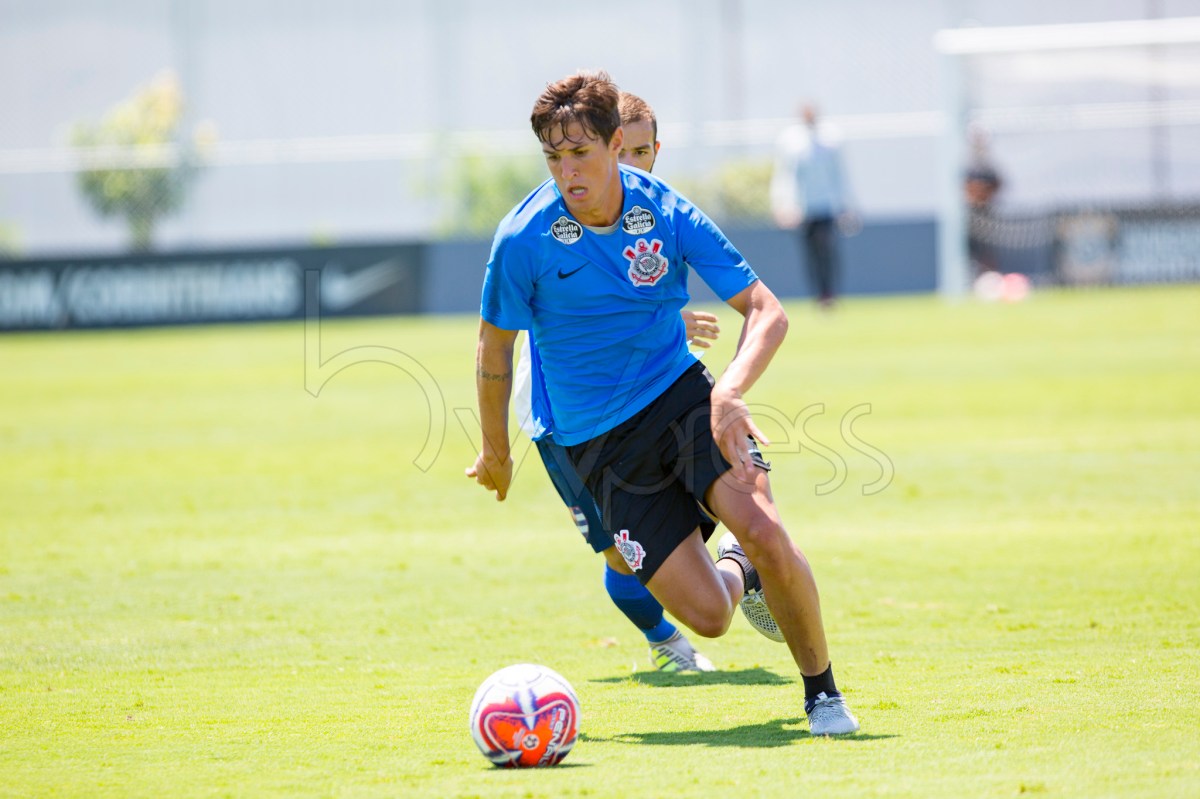 Jogador Matheus Vital durante jogo treino do Corinthians, contra o Nacional – SP, no CT Doutor Joaquim Grava, na zona leste de São Paulo (SP), nesta quinta feira (10).