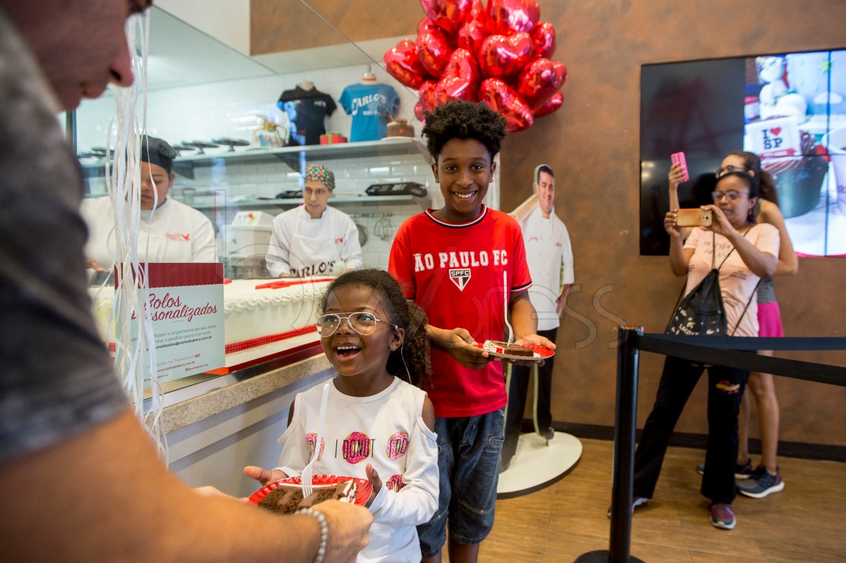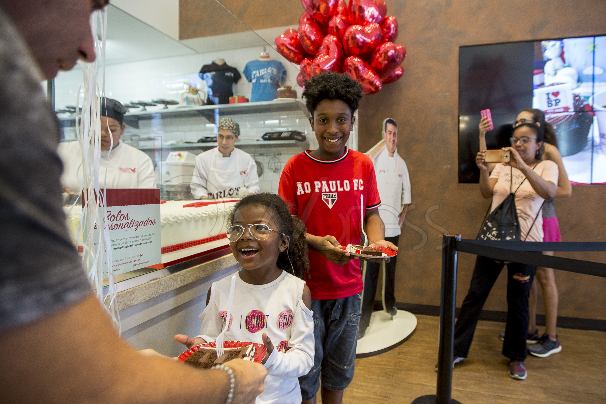 A confeitaria Carlo’s Baker, comandada por Buddy Valastro, o Cake Boss, distribui nesta sexta feira (25), 465 pedaços de bolo em comemoração ao aniversário de São Paulo. O prefeito Bruno Covas cortou o primeiro pedaço do bolo, na loja da Rua Bela Cintra, zona sul da cidade.