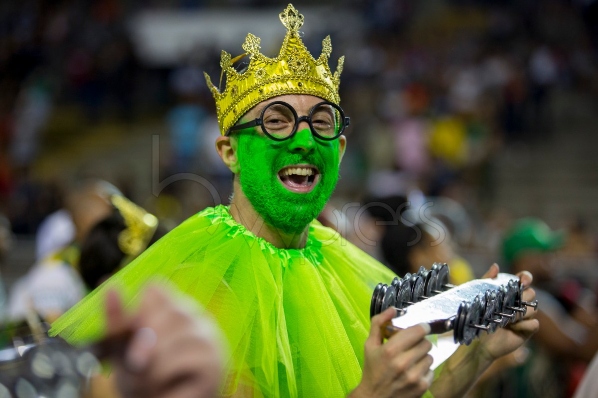 Integrantes da escola de samba Camisa Verde e Branco durante ensaio técnico para o Carnaval 2019, no Sambódromo do Anhembi em São Paulo (SP), neste sábado (26).