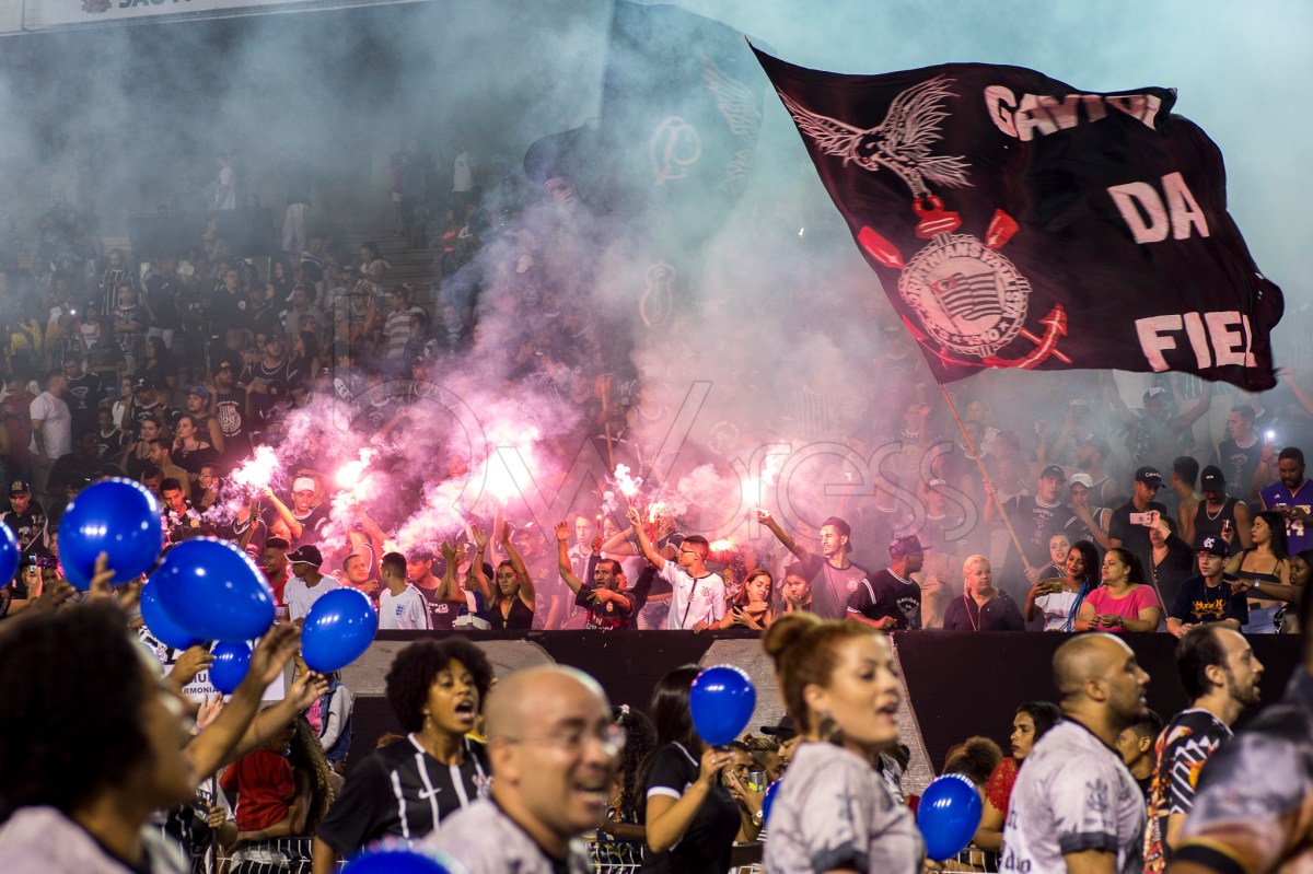 Integrantes da escola de samba Gaviões da Fiel durante ensaio técnico para o Carnaval 2019, no Sambódromo do Anhembi em São Paulo (SP), neste sábado (26).