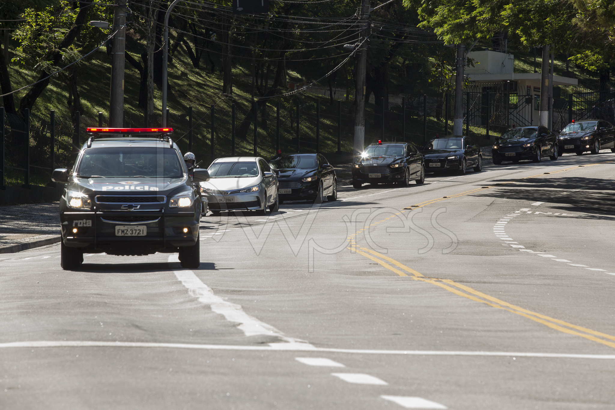 Comitiva com o presidente Jair Bolsonaro chega ao Hospital Albert Eistein, na zona sul de São Paulo (SP), neste domingo (27).
