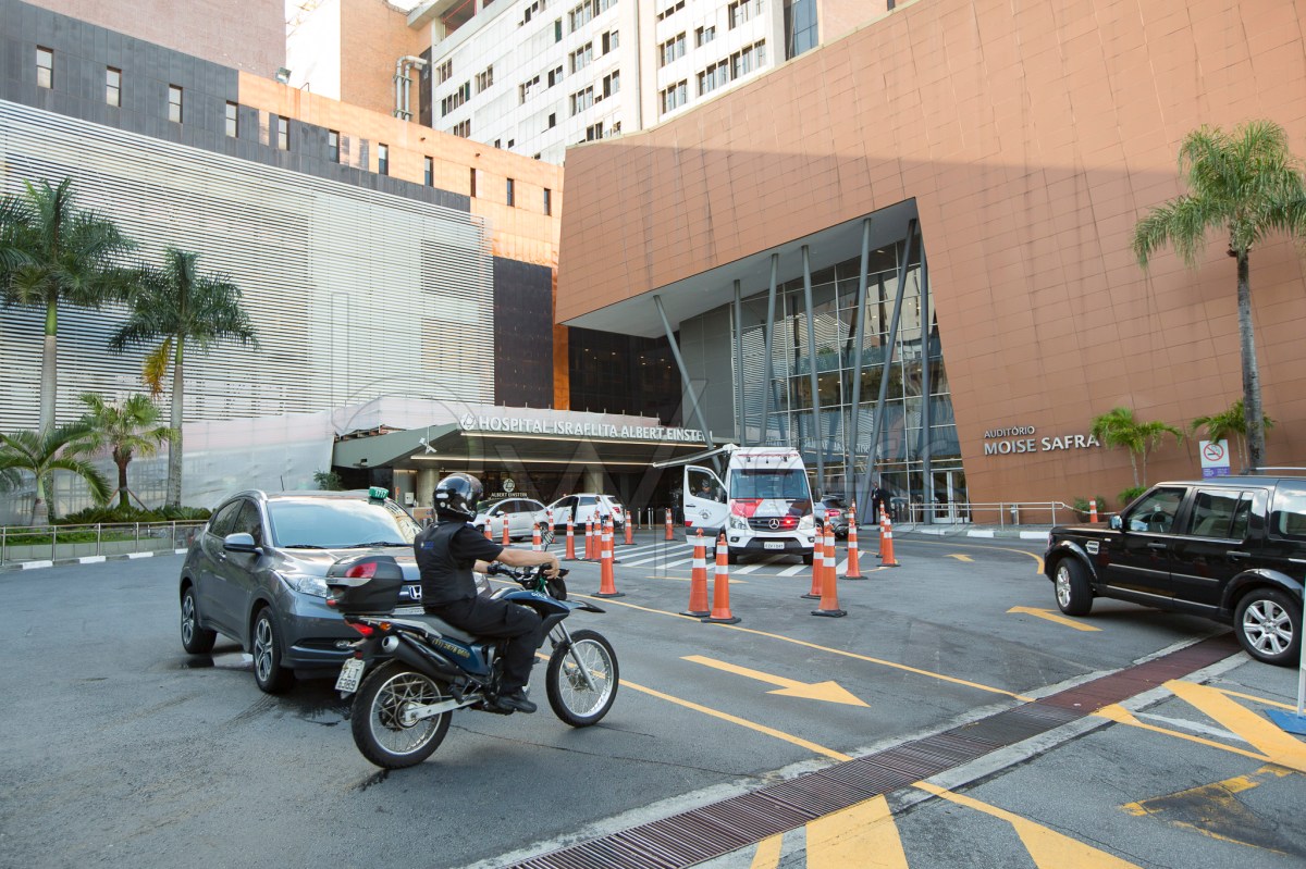 Comitiva com o presidente Jair Bolsonaro chega ao Hospital Albert Eistein, na zona sul de São Paulo (SP), neste domingo (27).