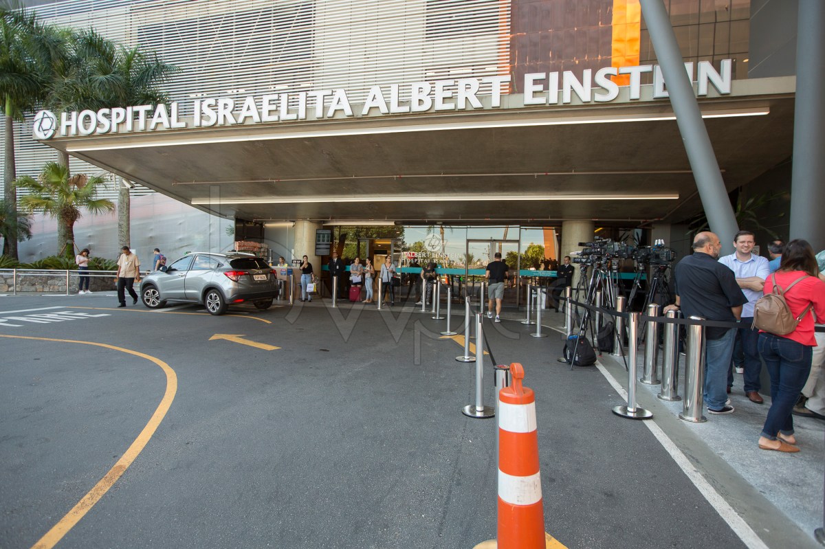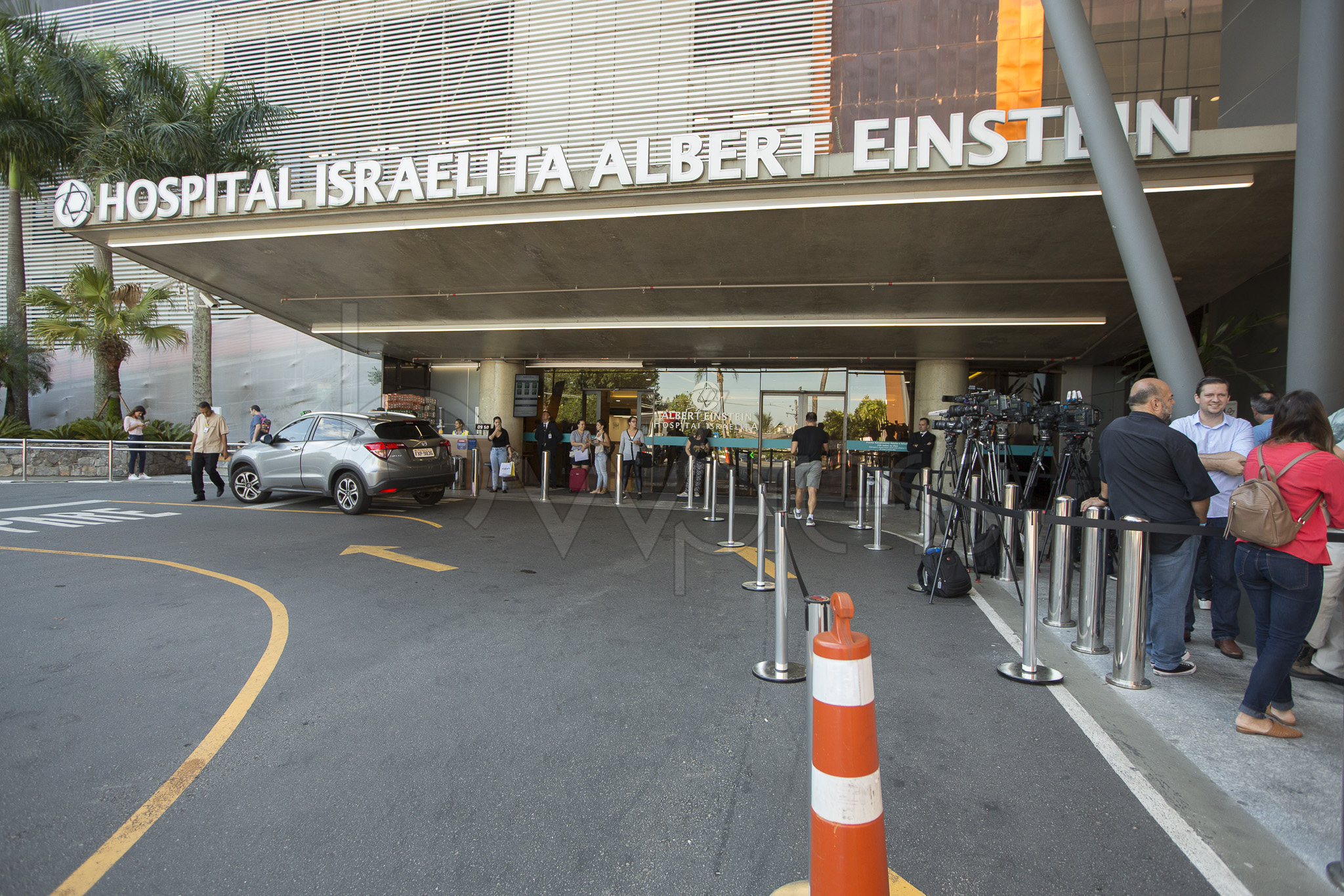 Comitiva com o presidente Jair Bolsonaro chega ao Hospital Albert Eistein, na zona sul de São Paulo (SP), neste domingo (27).