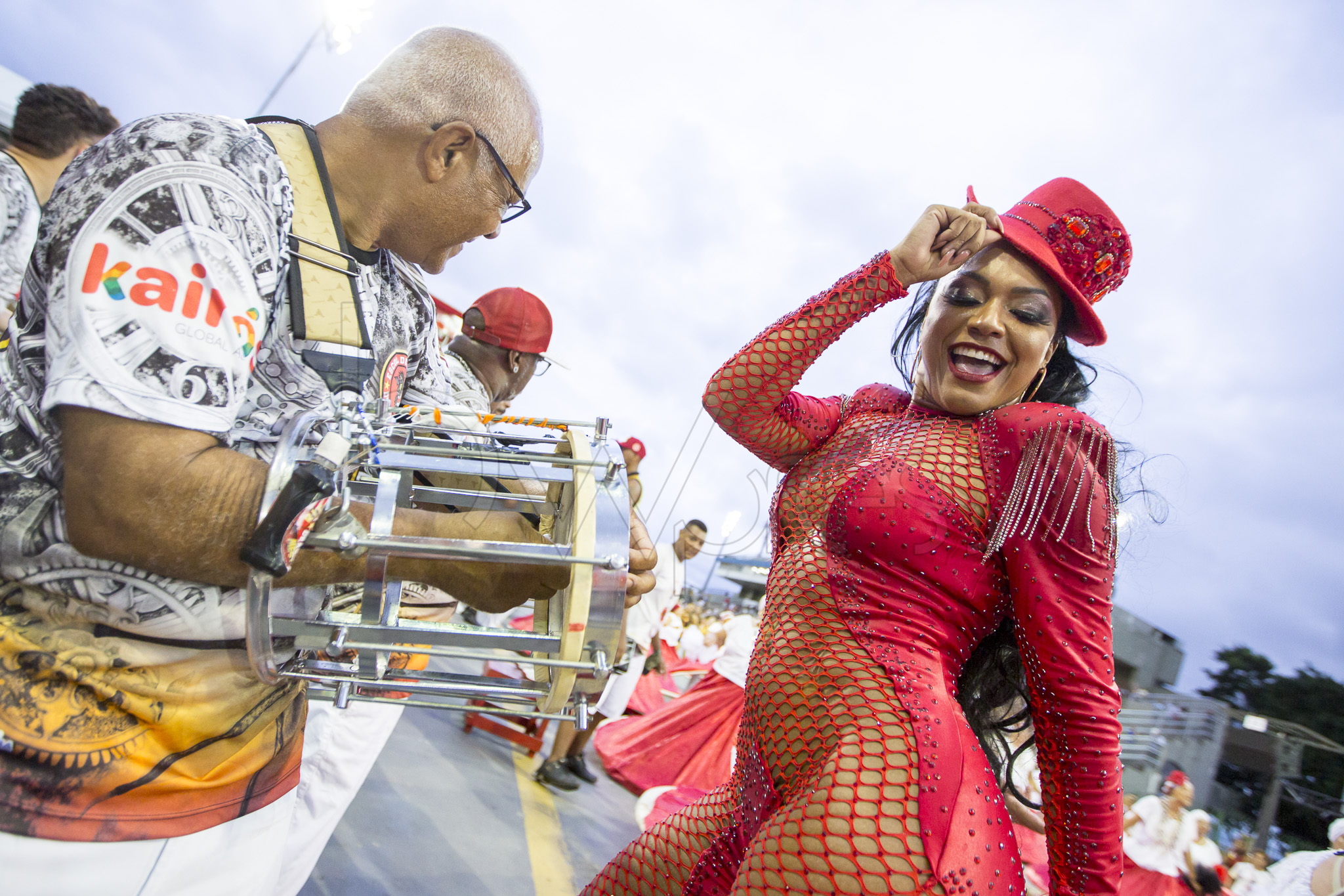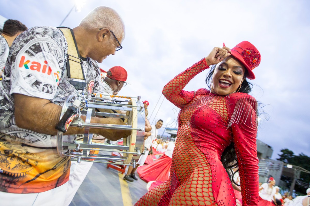 Simone Sampaio, rainha de bateria da escola de samba Dragões da Real durante ensaio técnico para o Carnaval 2019, no Sambódromo do Anhembi em São Paulo (SP), neste domingo (03).
