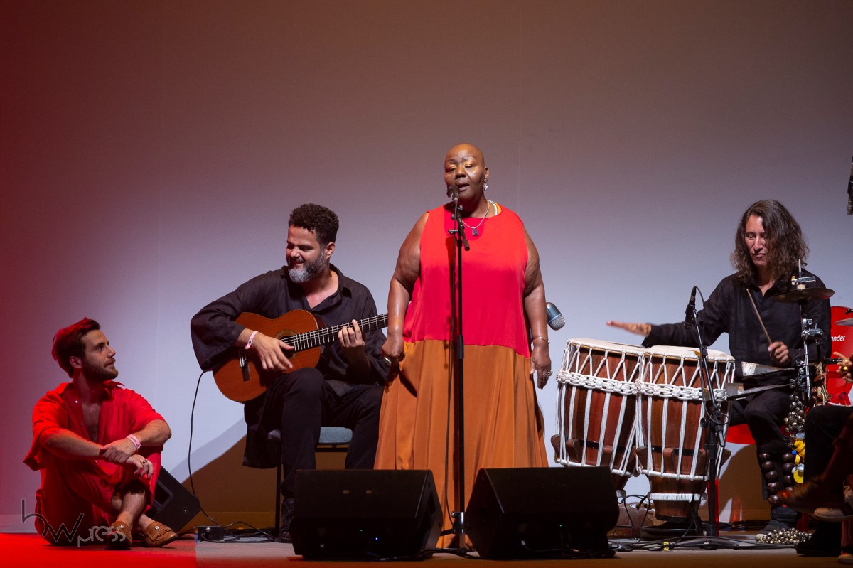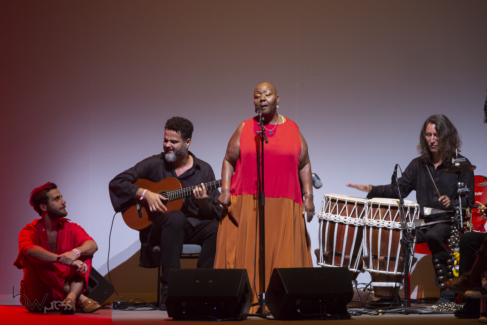 A cantora Virgínia Rodrigues se apresenta durante o desfile da grife Handred na edição N47, do São Paulo Fashion Week (SPFW), no espaço Arca, na zona oeste de São Paulo (SP), nesta quinta feira (25).