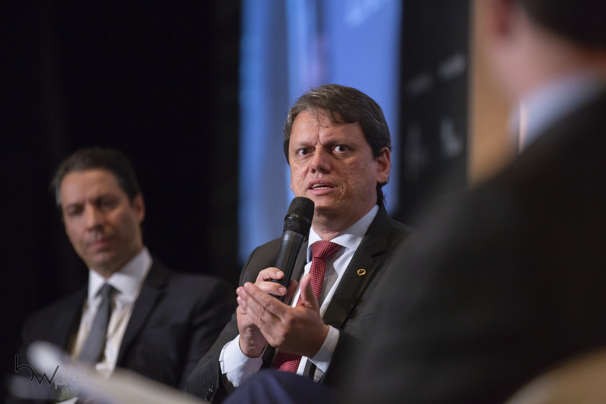 Tarcísio Gomes de Freitas, Ministro da Infraestrutura, durante o Exame Fórum PPPs e Concessões, na sede da AMCHAM Brasil, na zona sul de São Paulo (SP), nesta terça feira (27).