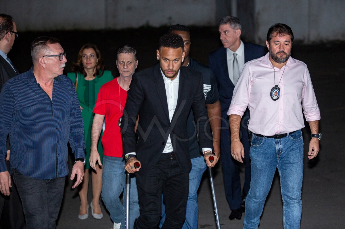 O jogador Neymar Jr na delegacia dos direitos da mulher, para prestar depoimento no processo em que é acusado de estupro pela modelo Najila Trindade.