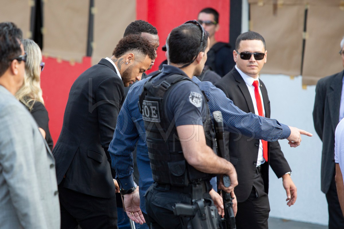 O jogador Neymar Jr na delegacia dos direitos da mulher, para prestar depoimento no processo em que é acusado de estupro pela modelo Najila Trindade.