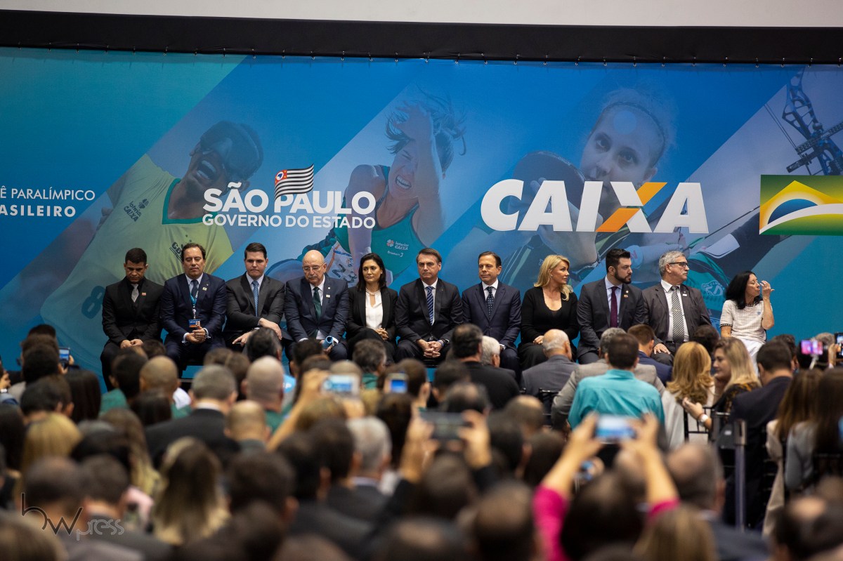 Cerimônia de assinatura do termo de compromisso entre a Caixa Econômica Federal e o Comitê Paralímpico Brasileiro, no Centro Paralímpico Brasileiro, na zona sul de São Paulo (SP), nesta quarta feira (19).