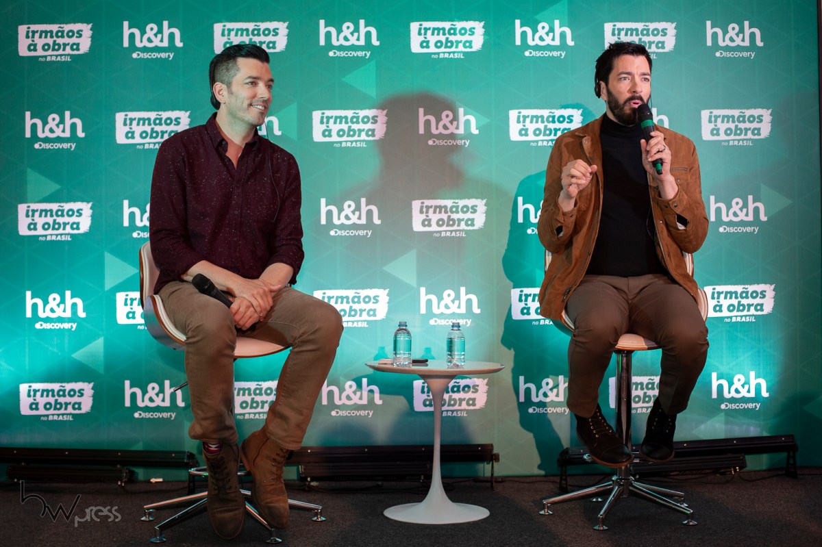 Os gêmeos Jonathan e Drew Scott, apresentadores do programa Irmãos à Obra, exibido pelo canal Discovery Home & Health participam de entrevista coletiva no Credicard Hall, na zona sul de São Paulo, nesta quarta feira (20). A dupla está no Brasil para participar de eventos com fãs.