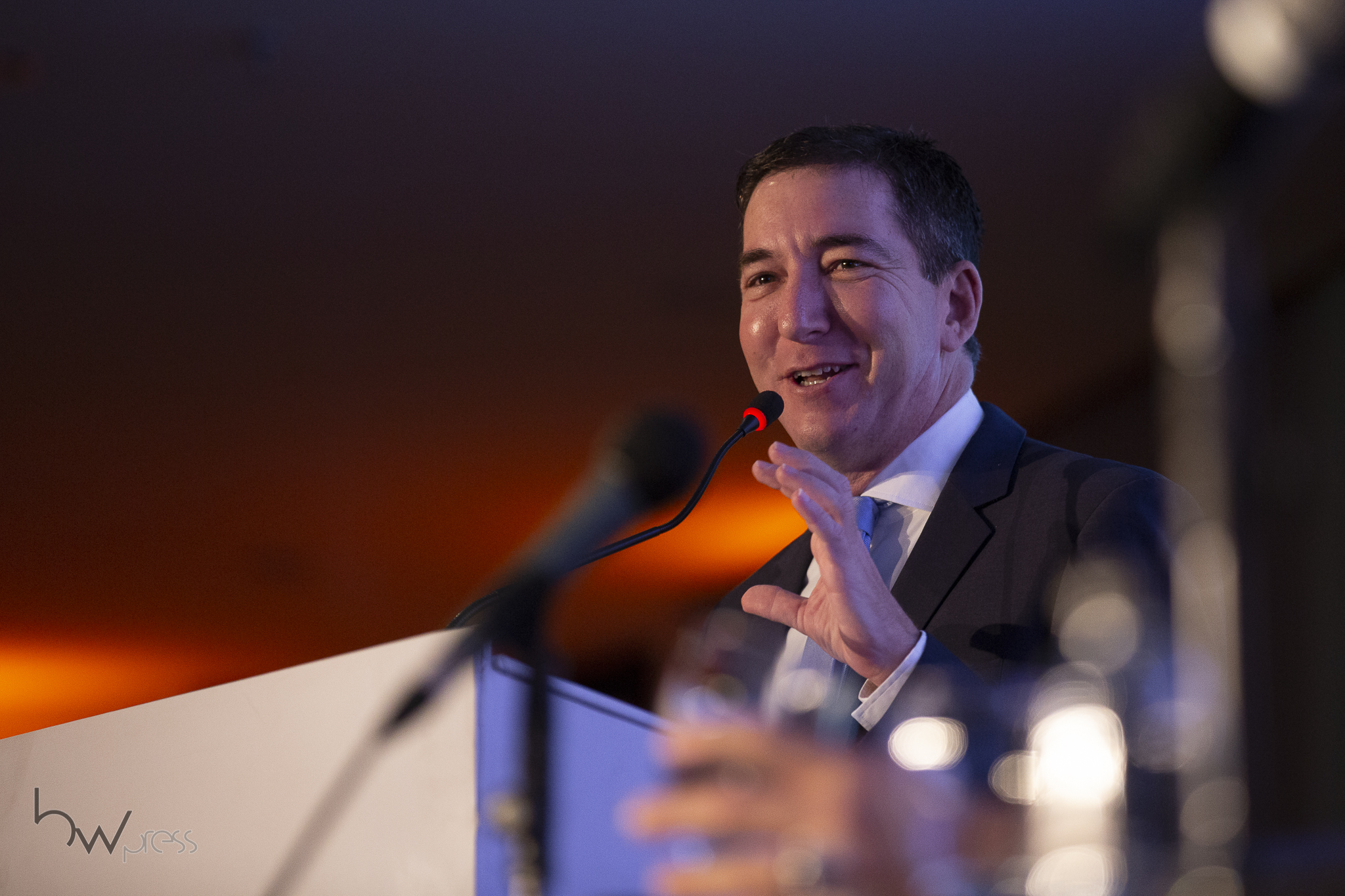 Glenn Greenwald, advogado e jornalista co-fundador do site The Intercept, participa da cerimônia de abertura do 25º Seminário Internacional de Ciências Criminais, no Hotel Tivoli Mofarrej em São Paulo.