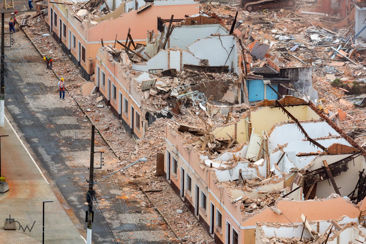 Demolição de 40 sobrados de uma antiga vila operária localizada entre as ruas Padre Estevão Pernet e João Migliari, no Tatuapé, zona leste de São Paulo (SP), neste domingo (01).