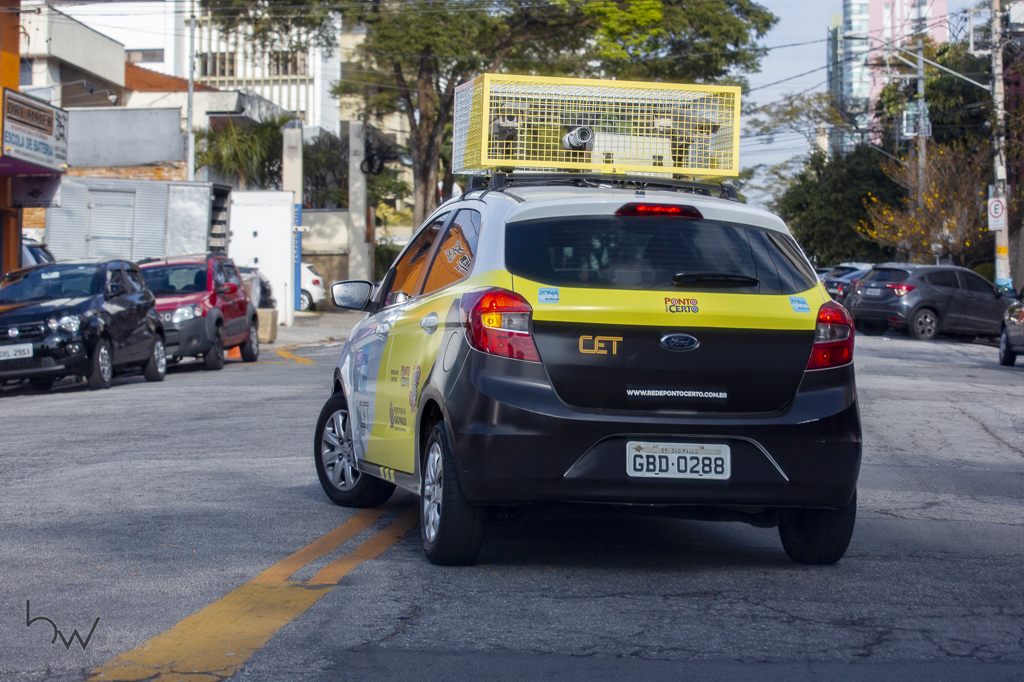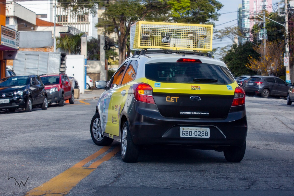 Viatura da CET equipada com câmeras fiscaliza a utilização da Zona Azul, nas ruas do Tatuapé, em São Paulo, nesta quinta-feira (29).