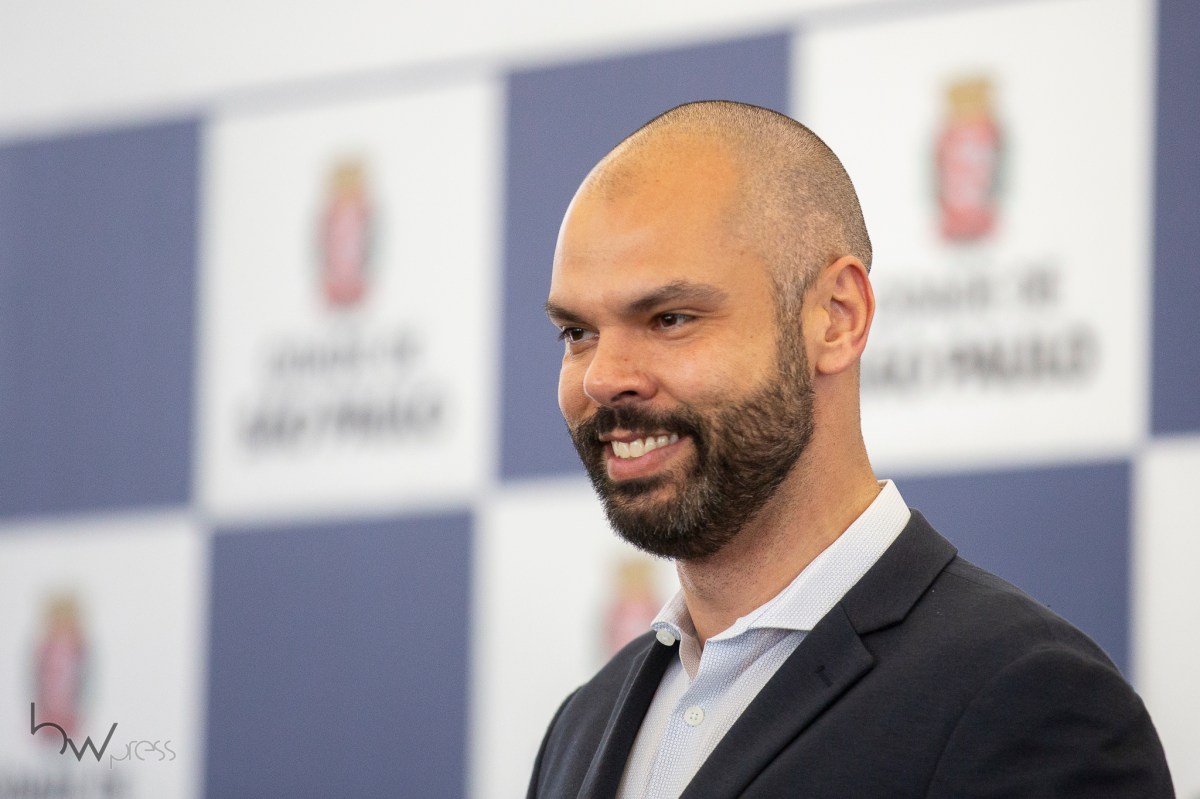 Cerimônia de assinatura da concessão do Pacaembú, na zona oeste de São Paulo (SP), nesta segunda-feira (16). O Consórcio Patrimônio SP irá administrar o complexo pelos próximos 35 anos.