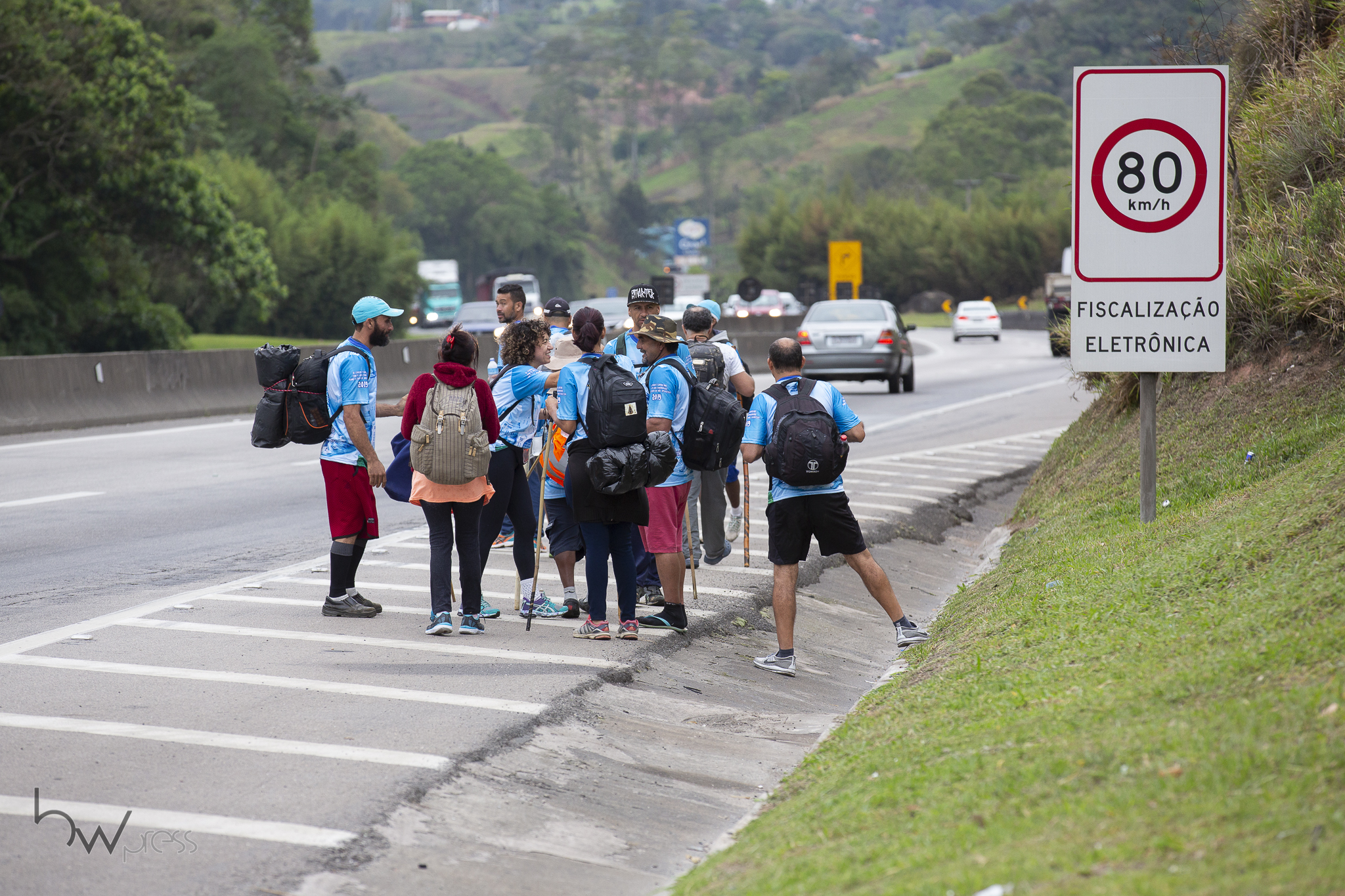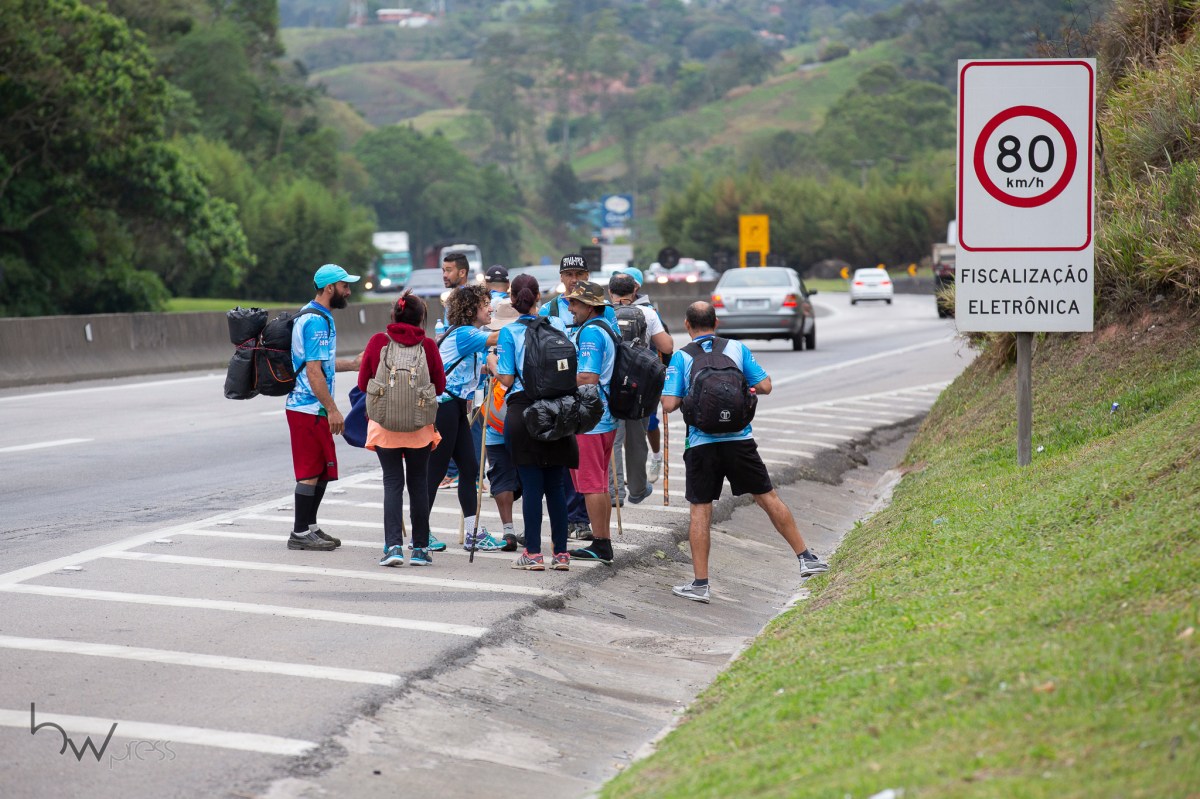 Romeiros caminham ao longo da Rodovia Presidente Dutra, nesta terça feira (8). Os fiéis se dirigem ao Santuário Nacional de Nossa Senhora Aparecida, para a celebração do dia da padroeira do Brasil, que acontece no próximo sábado (12).