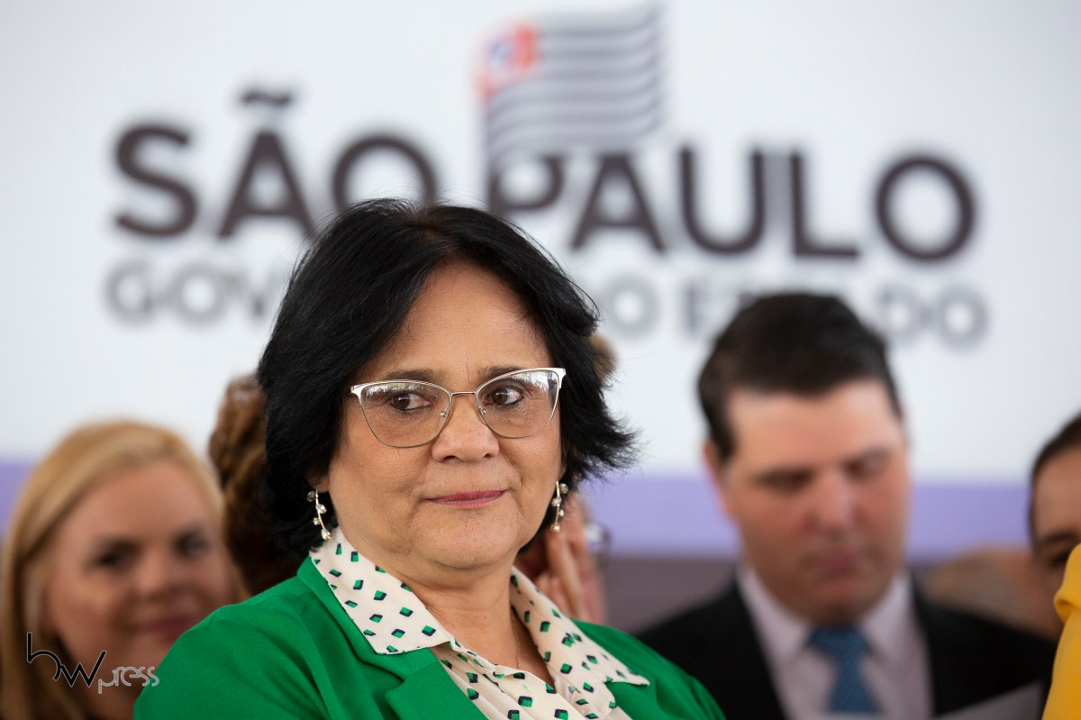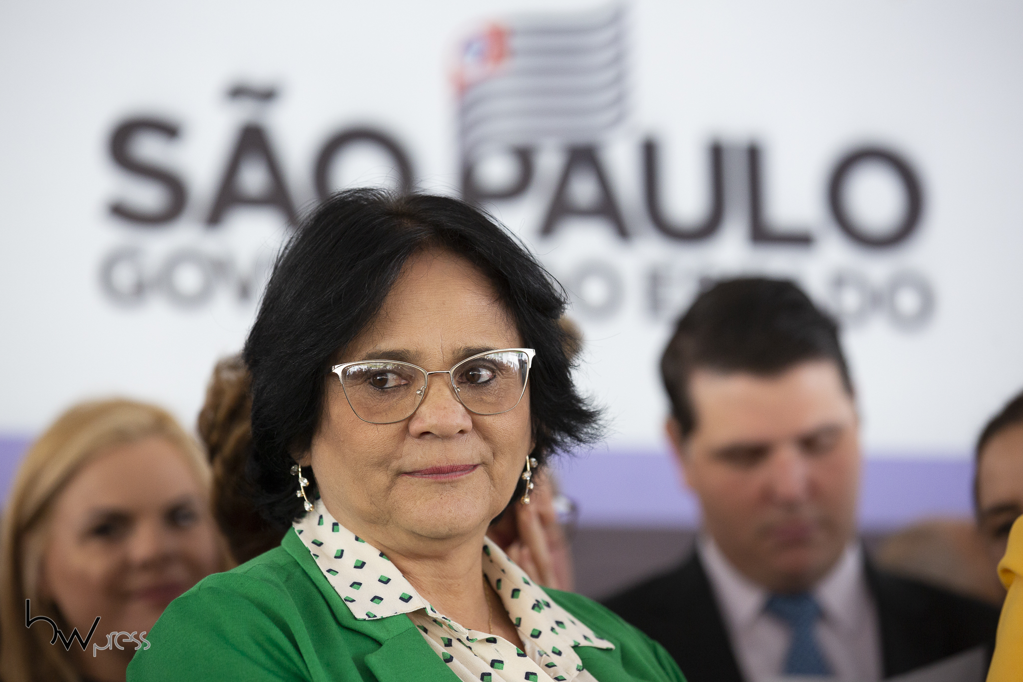 A Ministra Damares Alves durante evento de inauguração da Casa da Mulher Brasileira, no bairro do Cambuci, região central de São Paulo (SP), nesta segunda feira (11). O local funcionará 24 horas por dia, prestando atendimento a mulheres vítimas de violência.