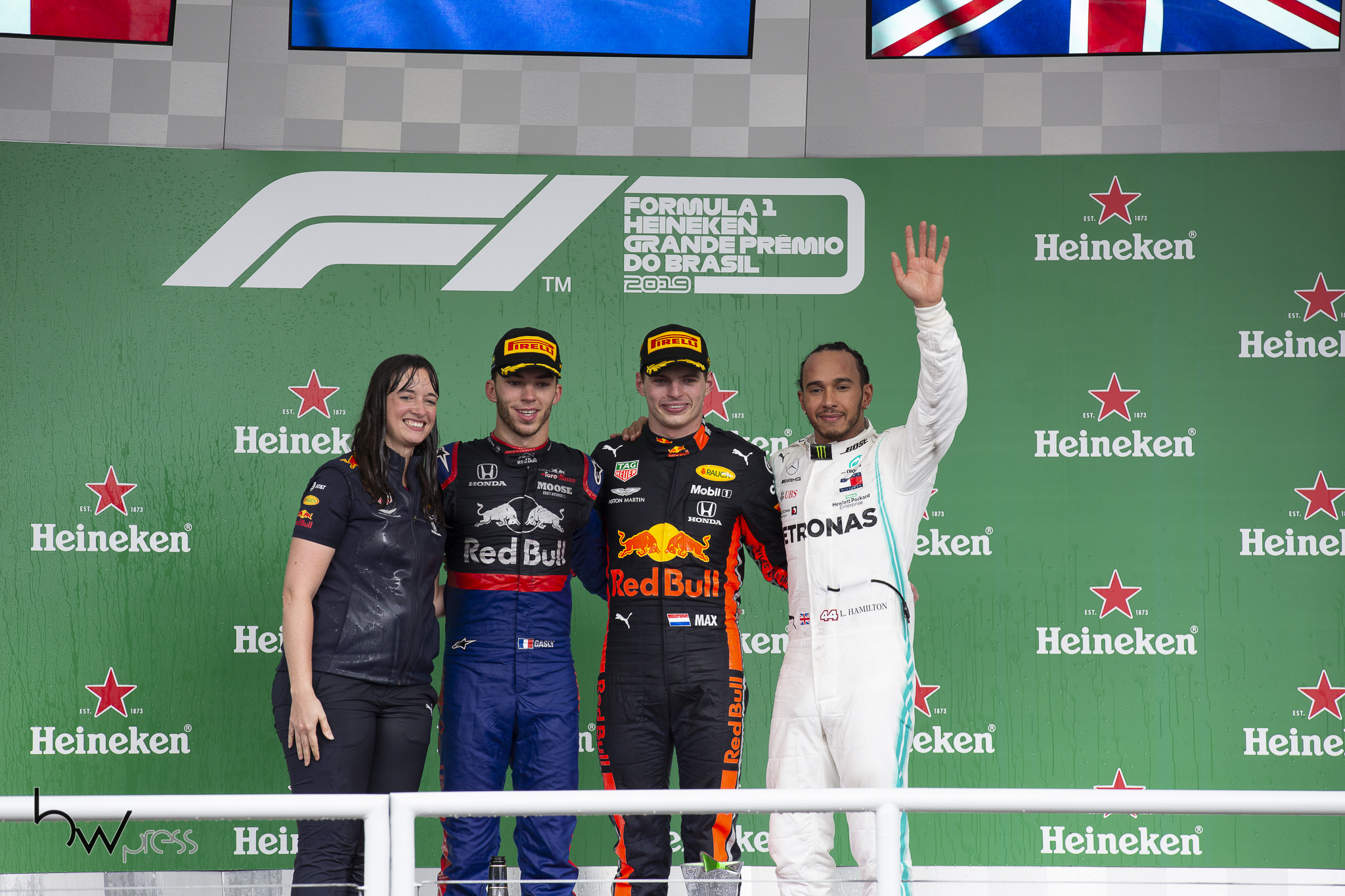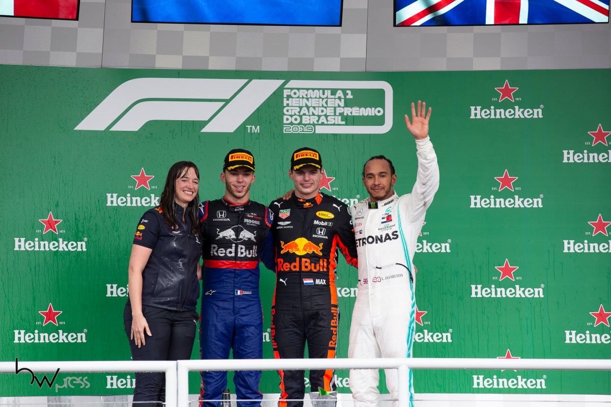 Pódio do Grande Prêmio Brasil de Fórmula 1, no Autódromo de Interlagos, zona sul de São Paulo (SP), neste domingo (17).