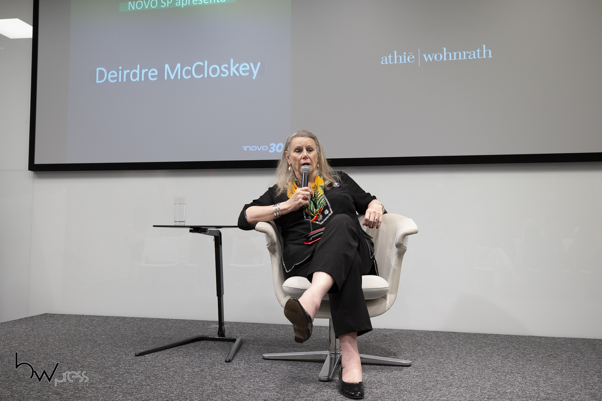 A economista Norte Americana Deirdre McCloskey participa de palestra para filiados do partido Novo, na zona sul de São Paulo (SP), nesta quinta feira (30).