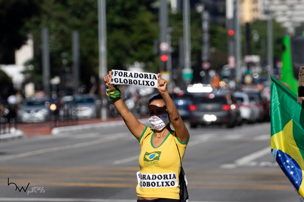 Apoiadores do Presidente Jair Bolsonaro fazem manifestação contra João Doria, Governador de São Paulo, na Av. Paulista, região central de São Paulo, neste sábado (9).