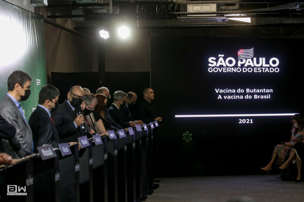 Entrevista coletiva para novas informações sobre os estudos clínicos da Coronavac, na sede do Instituto Butantan, na zona oeste de São Paulo (SP), nesta terça feira (12).