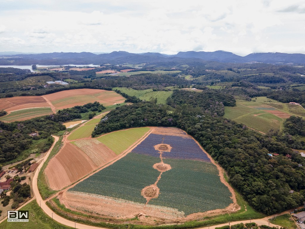 Vista aérea de lavouras no distrito de Biritiba Ussú, na cidade de Mogi das Cruzes (SP), neste domingo (24). A região é parte do chamado “Cinturão Verde de São Paulo” e é composta basicamente por pequenos agricultores que cultivam verduras e legumes.