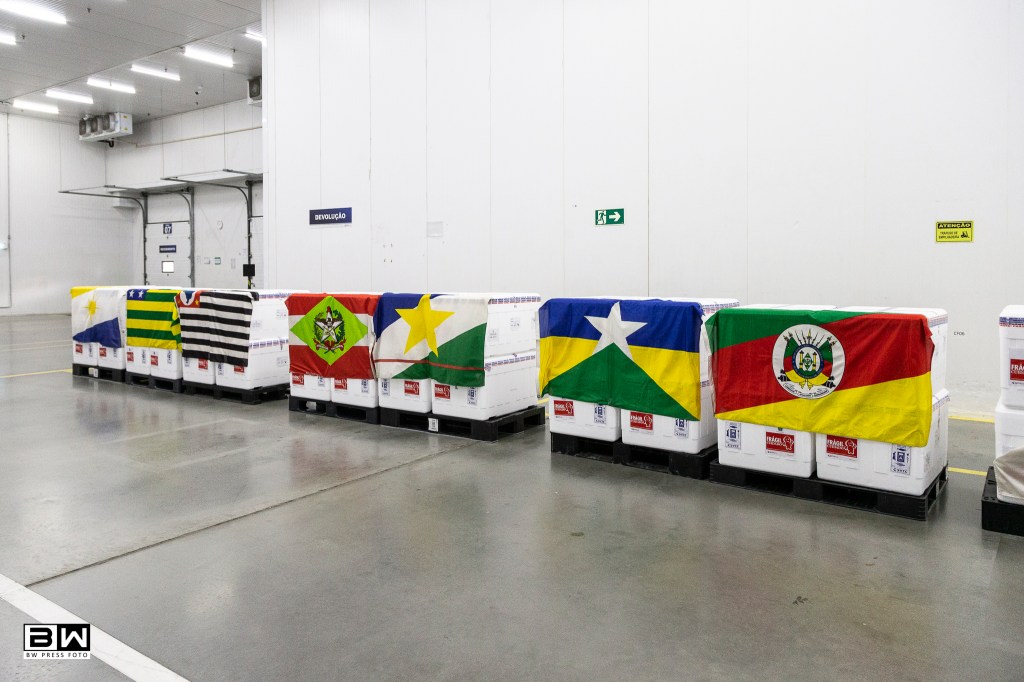Início da distribuição da vacina Coronavac para os estados Brasileiros. Organizada pelo Ministério da Saúde, as doses do imunizante partiram de avião da Base Aérea de São Paulo, no Aeroporto de Cumbica, em Guarulhos.