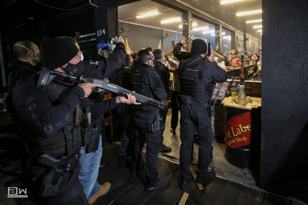 No local estavam cerca de 120 pessoas, desrespeitando as medidas sanitárias. Em uma área reservada, haviam 9 máquinas caça níqueis. O estabelecimento foi autuado e multado em cerca de 350 mil reais.
