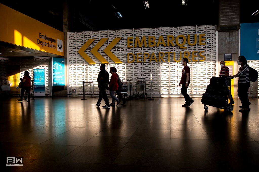 Movimentação de passageiros no Terminal 2 do Aeroporto Internacional de São Paulo, em Guarulhos, nesta segunda feira (9).