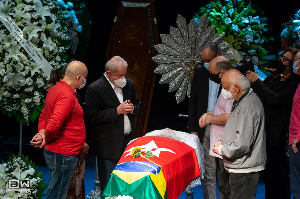 O ex presidente Luiz Inácio Lula da Silva, durante o velório do ator Sérgio Mamberti, no Teatro SESC Anchieta, na região central de São Paulo (SP), nesta sexta-feira (3).