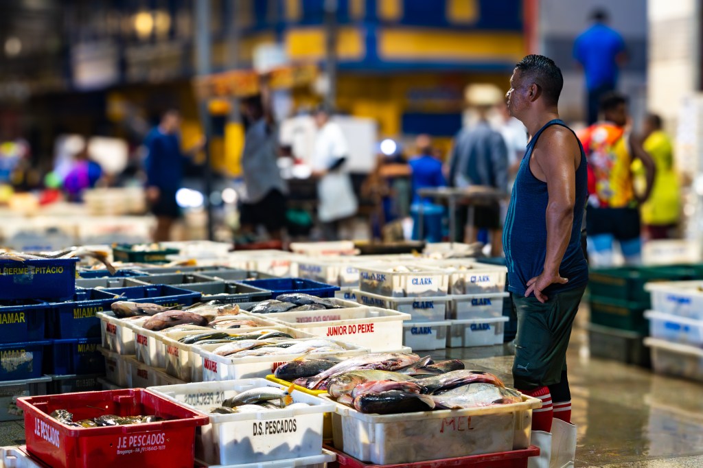 Cerca de 80 toneladas de peixe são recebidas diariamente no local.
