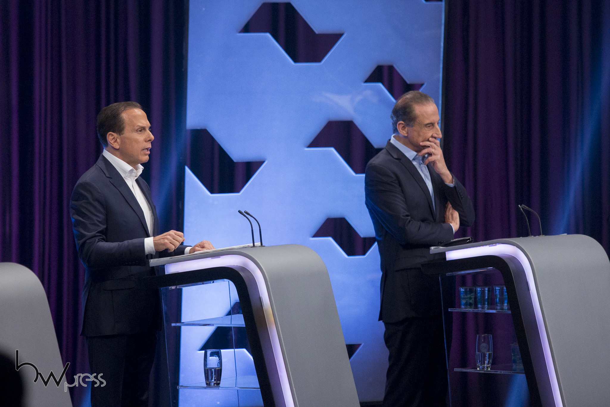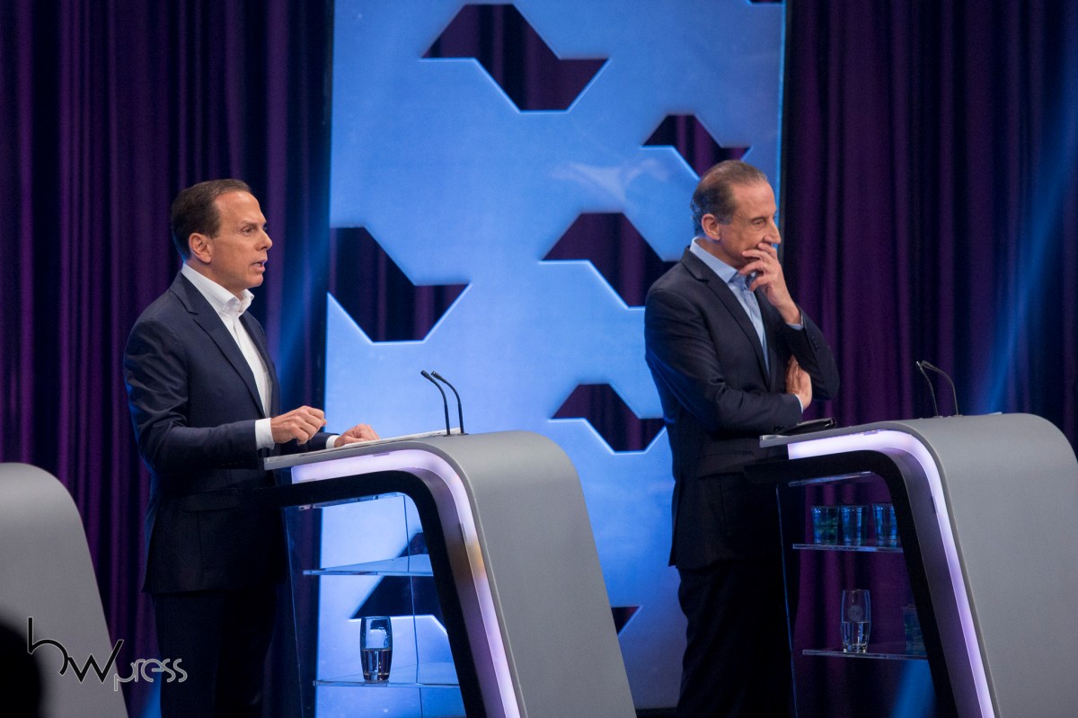 Candidatos ao governo do estado de São Paulo, durante debate das eleições 2018 promovido pelo UOL, Folha de São Paulo e SBT, na sede da emissora, na zona oeste de São Paulo, nesta quarta feira (19).
