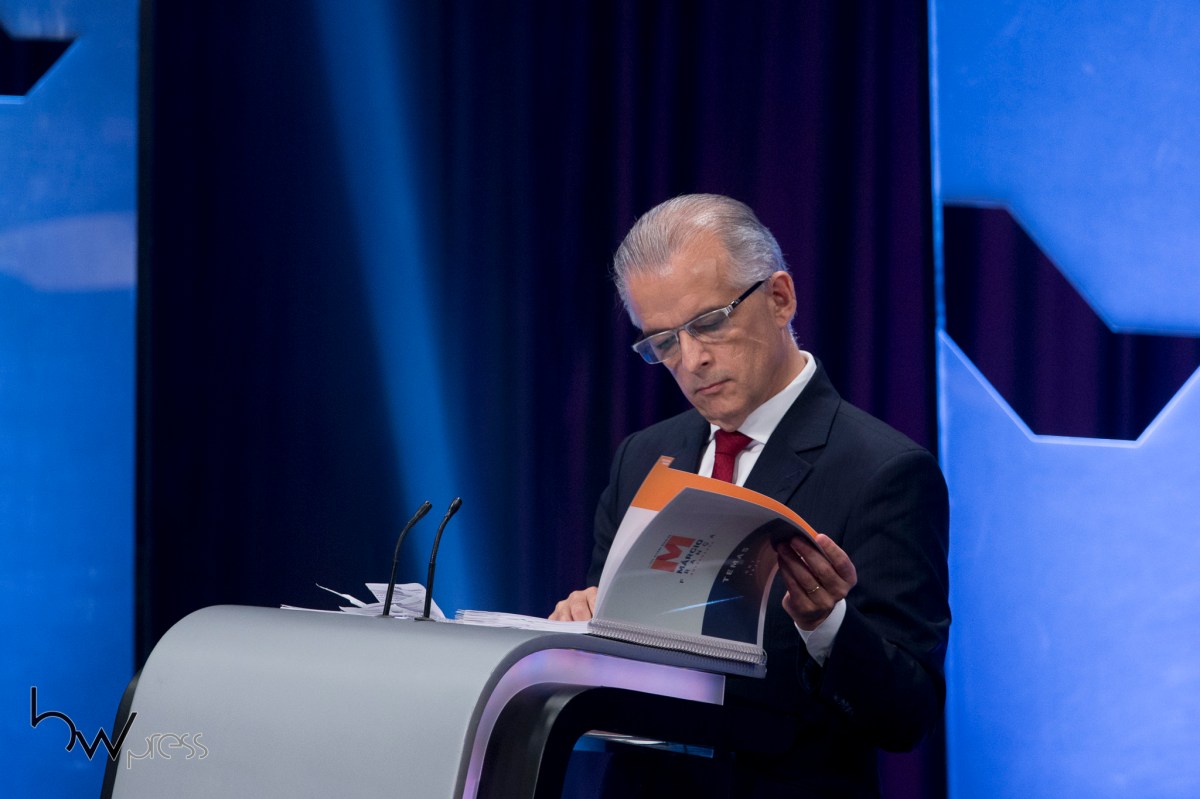 Candidatos ao governo do estado de São Paulo, durante debate das eleições 2018 promovido pelo UOL, Folha de São Paulo e SBT, na sede da emissora, na zona oeste de São Paulo, nesta quarta feira (19).